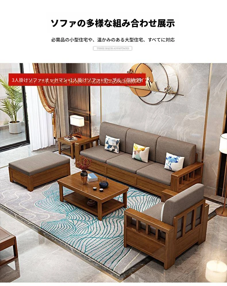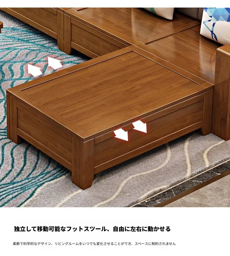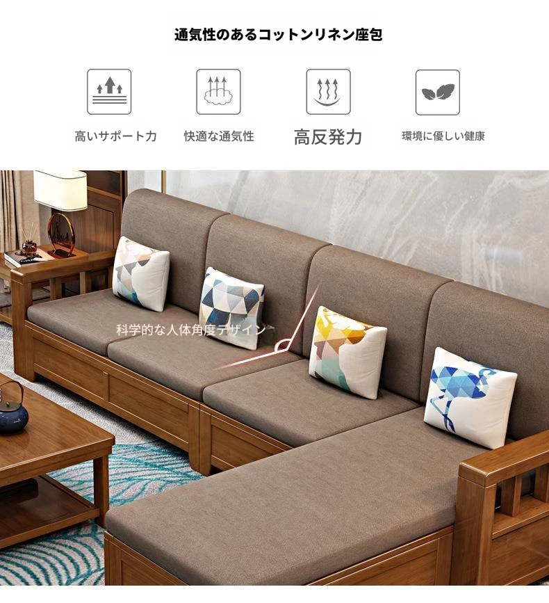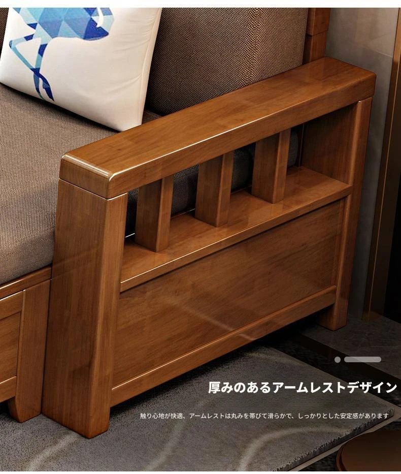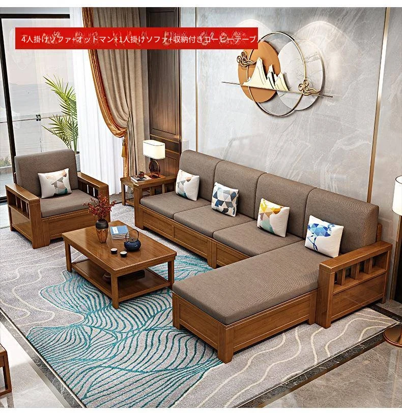 モダンミニマリストの実木ソファセット|経済的な布製ソファ|新中式デザインの小型リビングに最適|収納機能付きでお部屋をスッキリ整理!