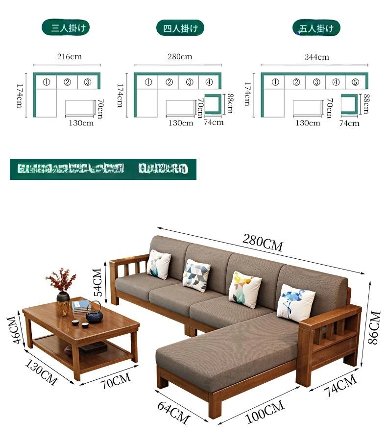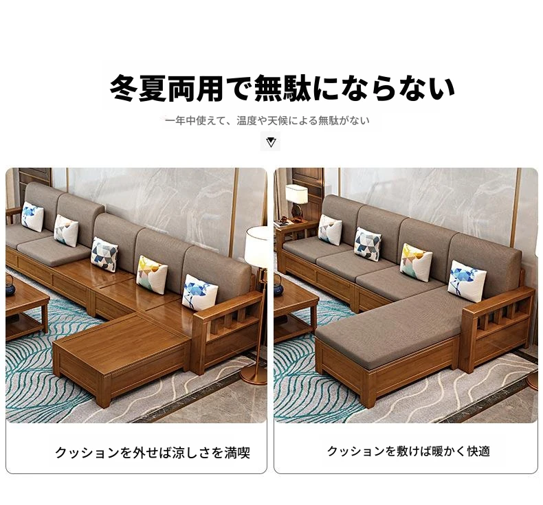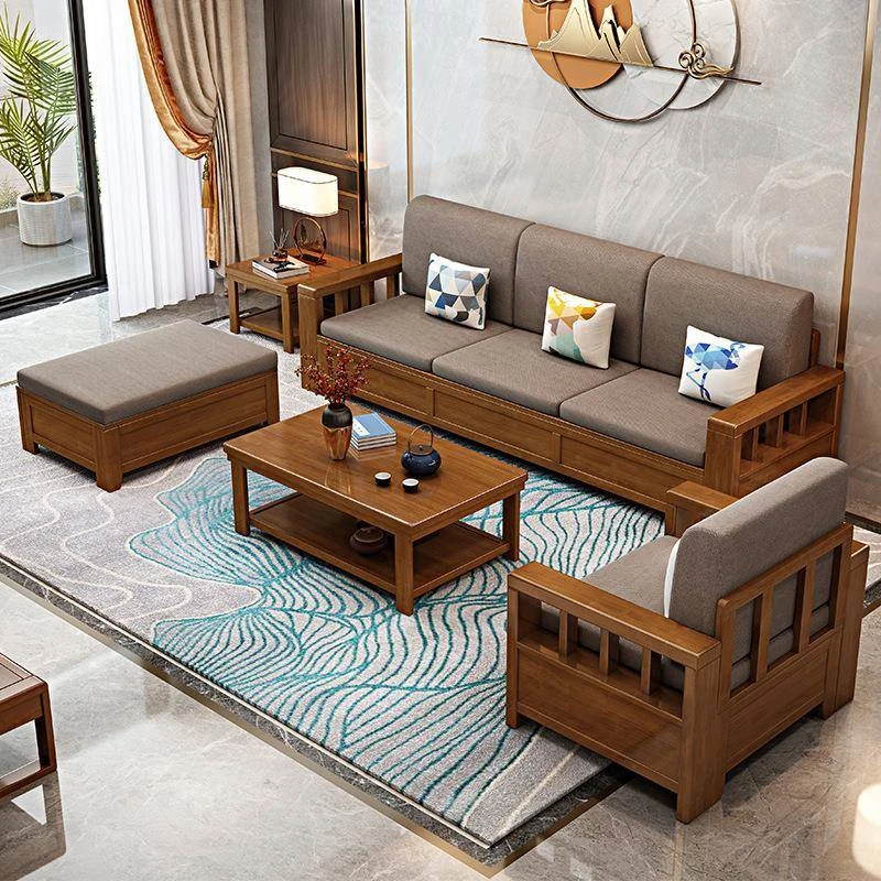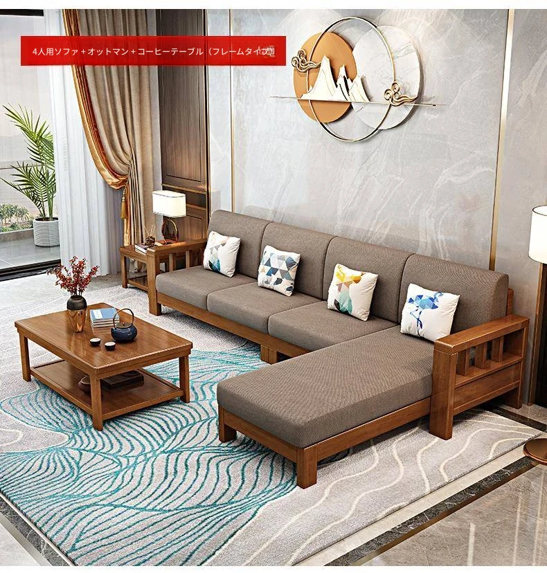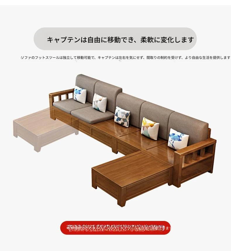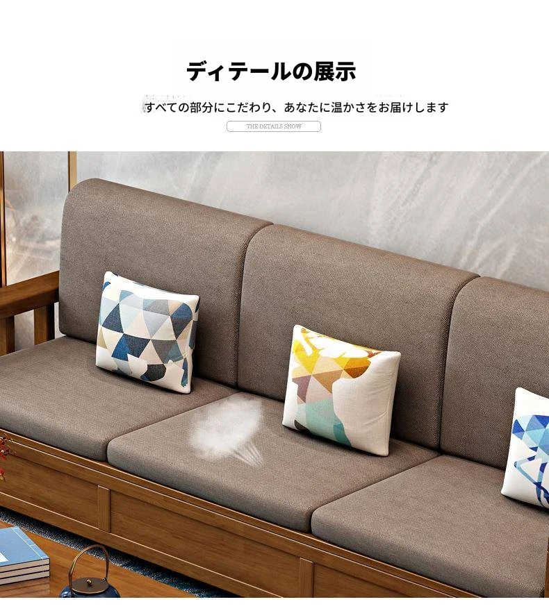 モダンミニマリストの実木ソファセット|経済的な布製ソファ|新中式デザインの小型リビングに最適|収納機能付きでお部屋をスッキリ整理!