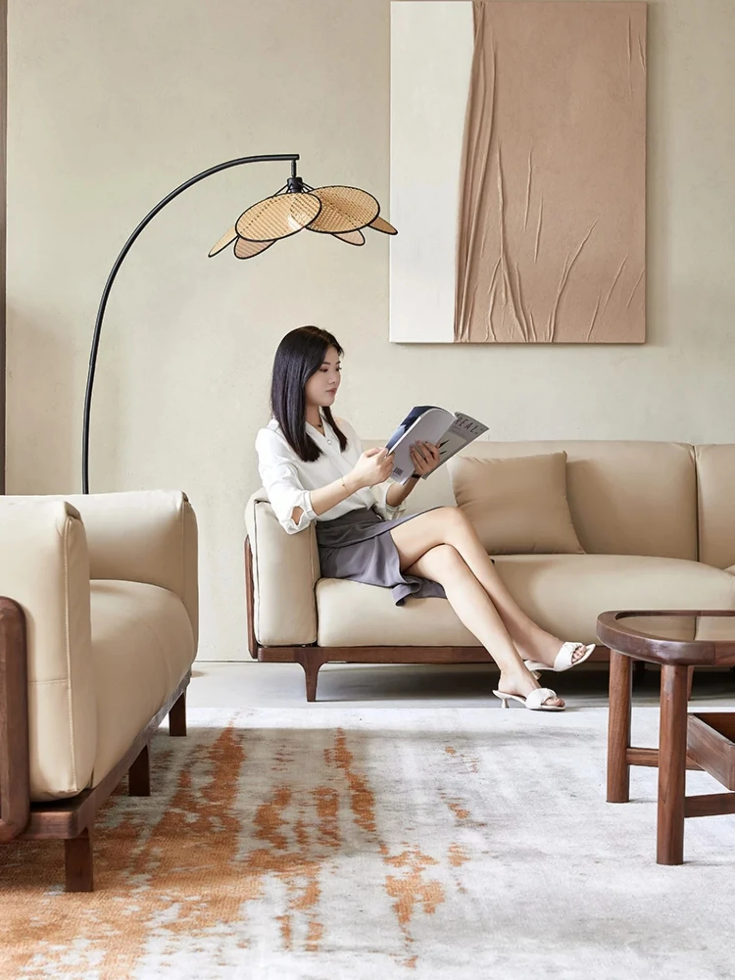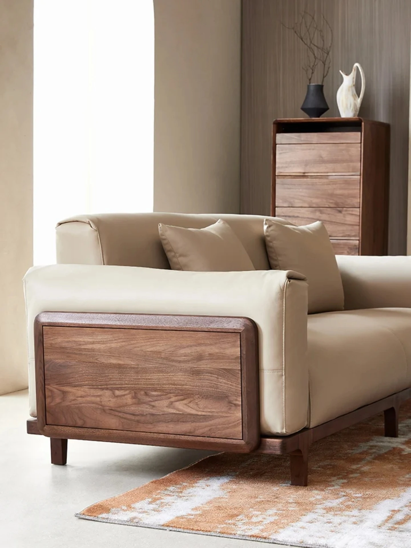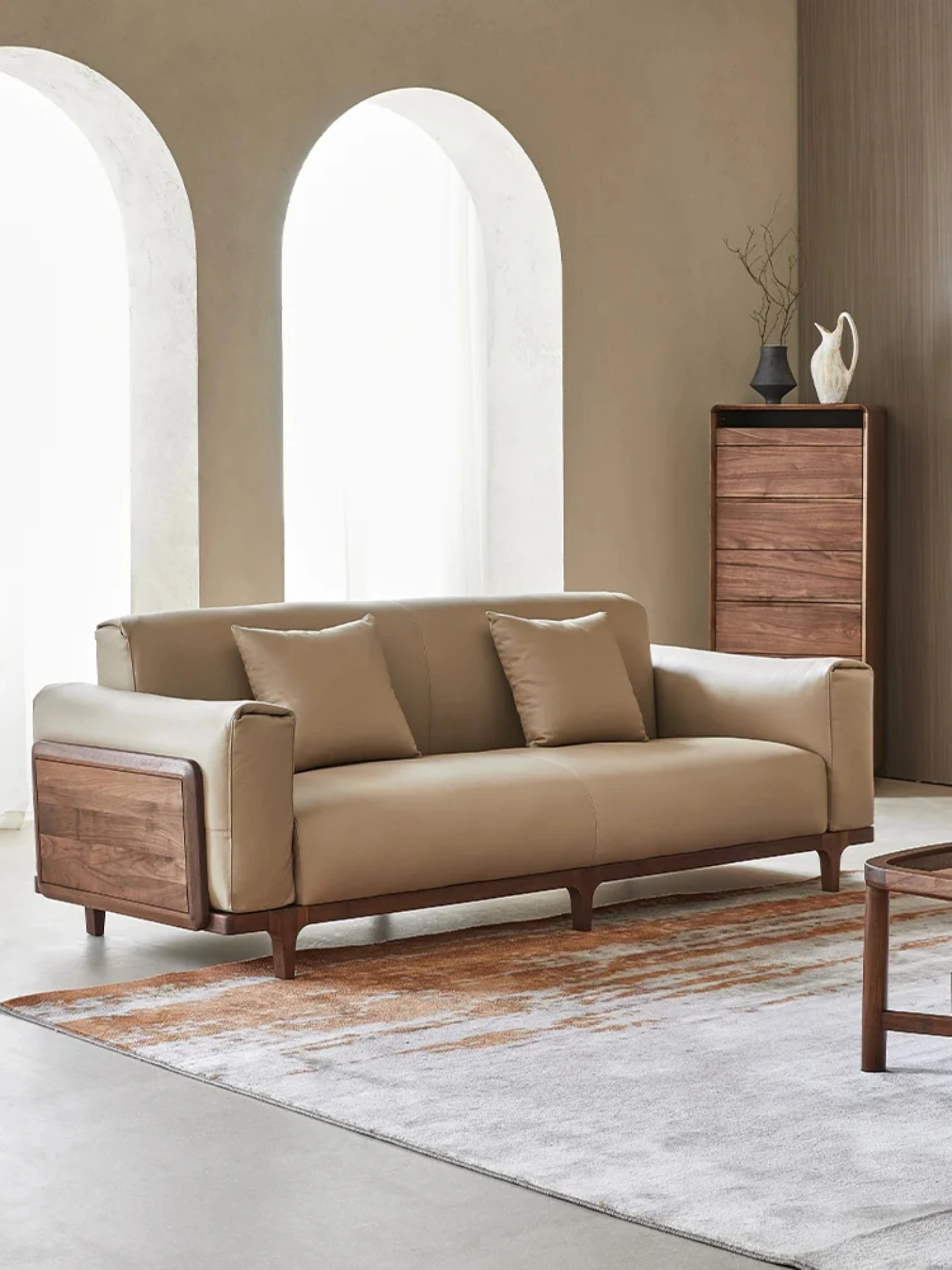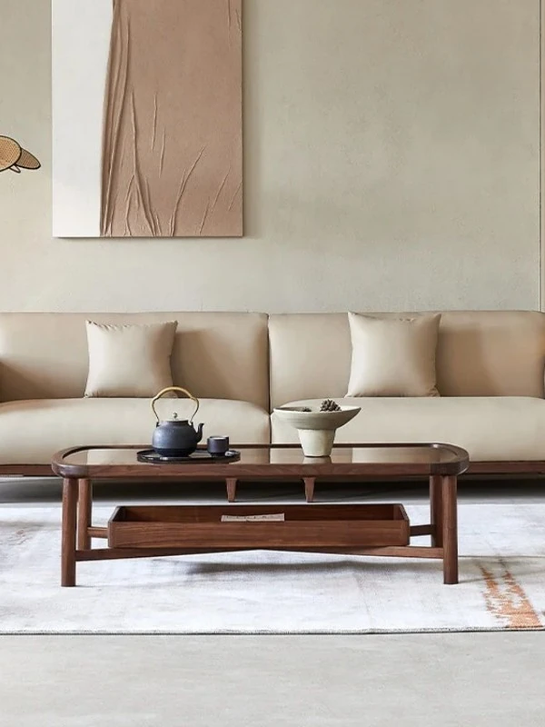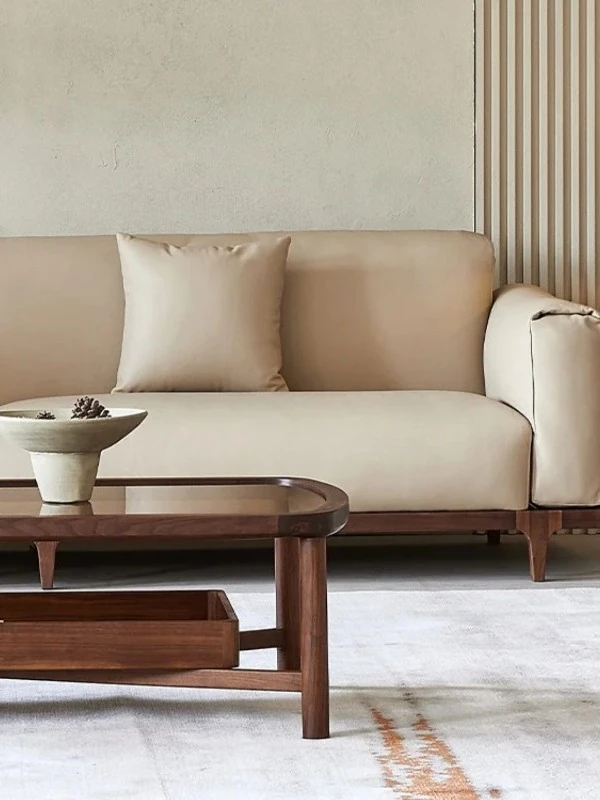 新中式の無垢材ソファセット - モダンでシンプルなデザイン、リビングルームや別荘に最適な3人掛け・4人掛け、心を癒す禅のスタイルの家具。上質な素材と洗練されたデザインで、心地よい空間を演出します。