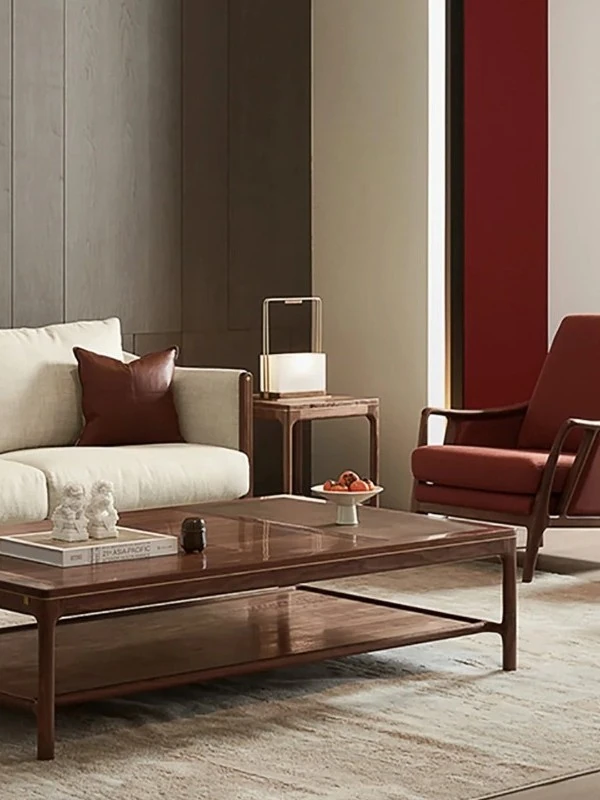新中式スタイルの無垢材ソファセット - モダンでシンプルなデザイン、リビングや別荘にぴったりの3人掛け・4人掛け禅風家具。心地よい空間を演出します!