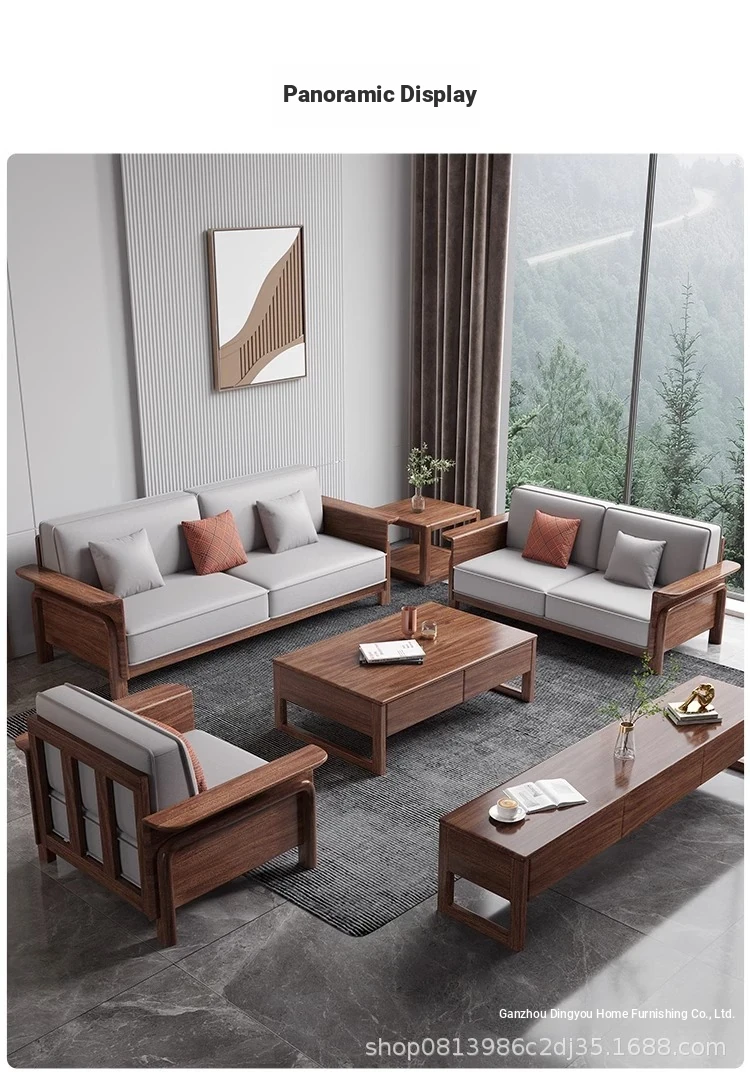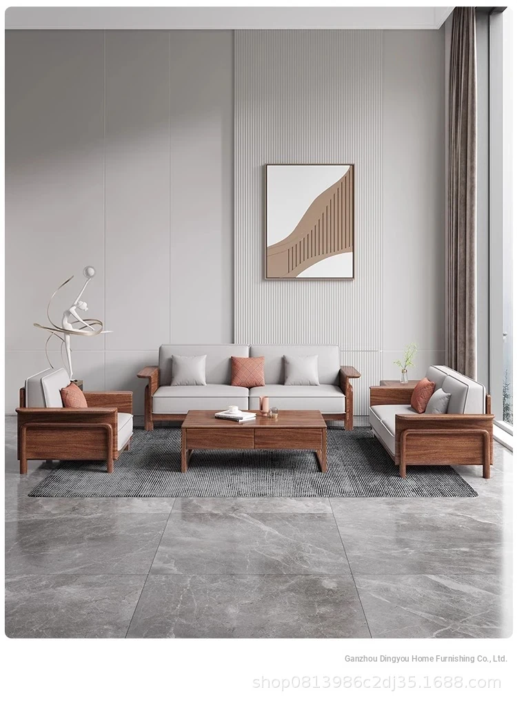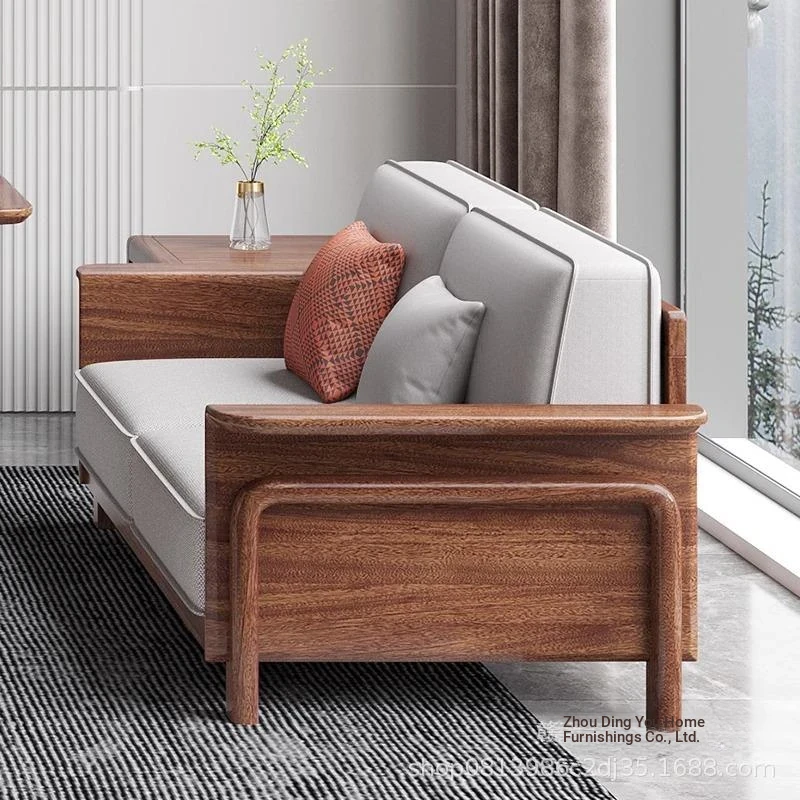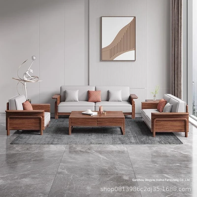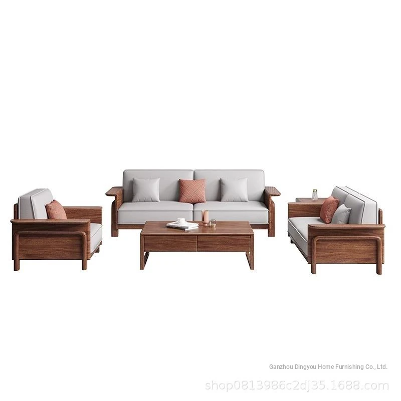 Modern Minimalist Walnut Wood Sofa Set - Nordic Style Fabric Sofa for Living Room, Available in Single, Double, and Three-Seater Combinations. Perfect for Stylish and Cozy Interiors!