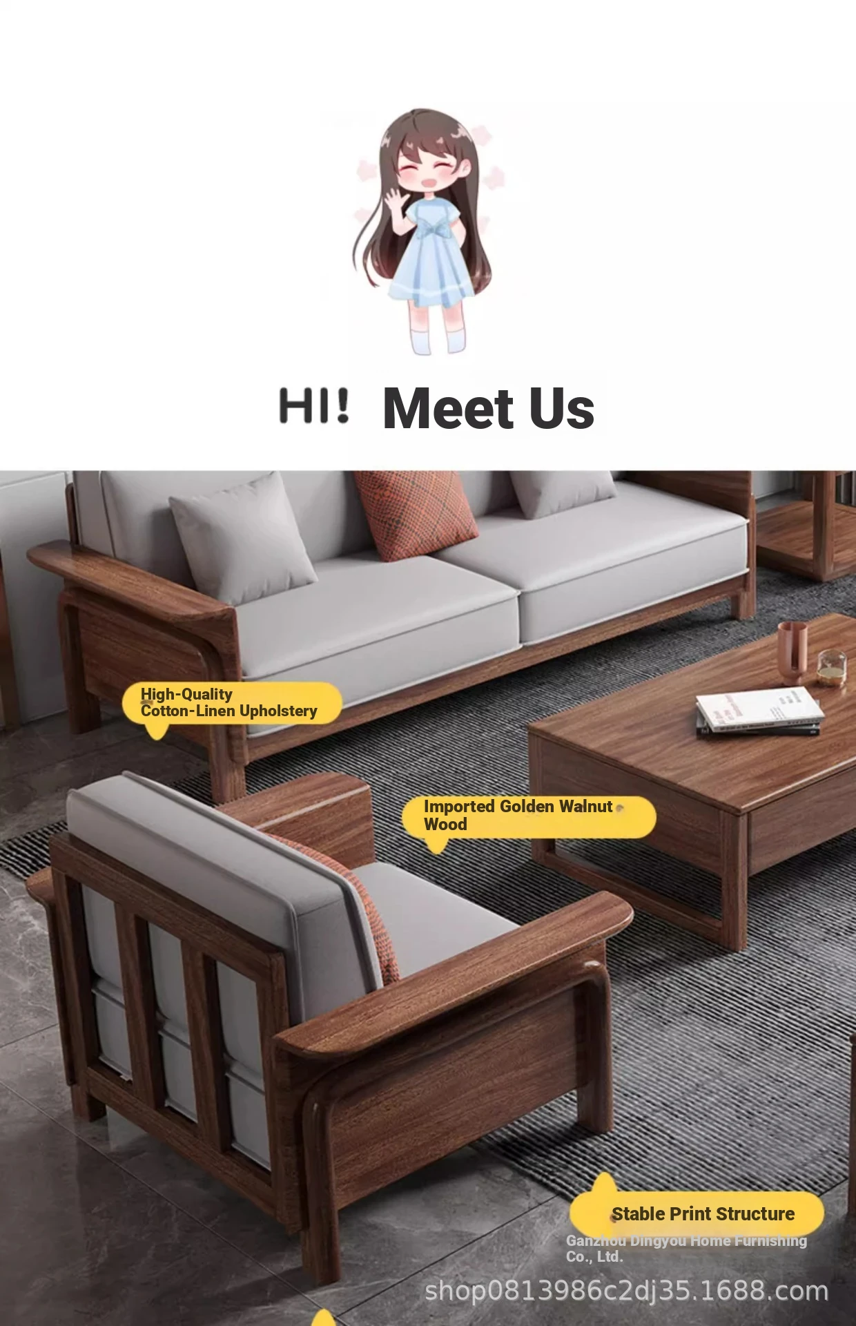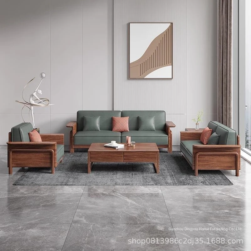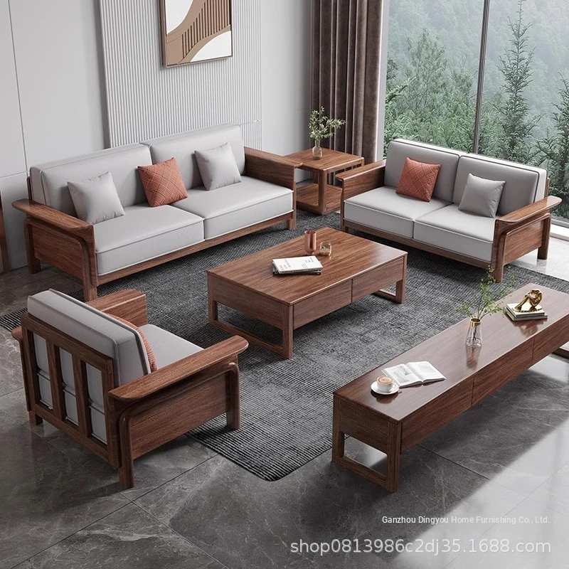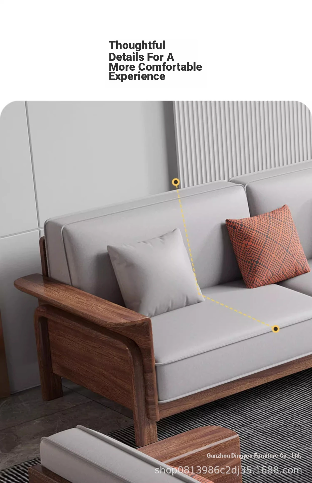 Modern Minimalist Walnut Wood Sofa Set - Nordic Style Fabric Sofa for Living Room, Available in Single, Double, and Three-Seater Combinations. Perfect for Stylish and Cozy Interiors!