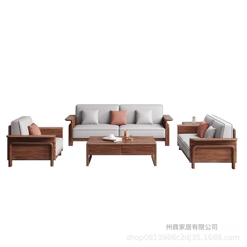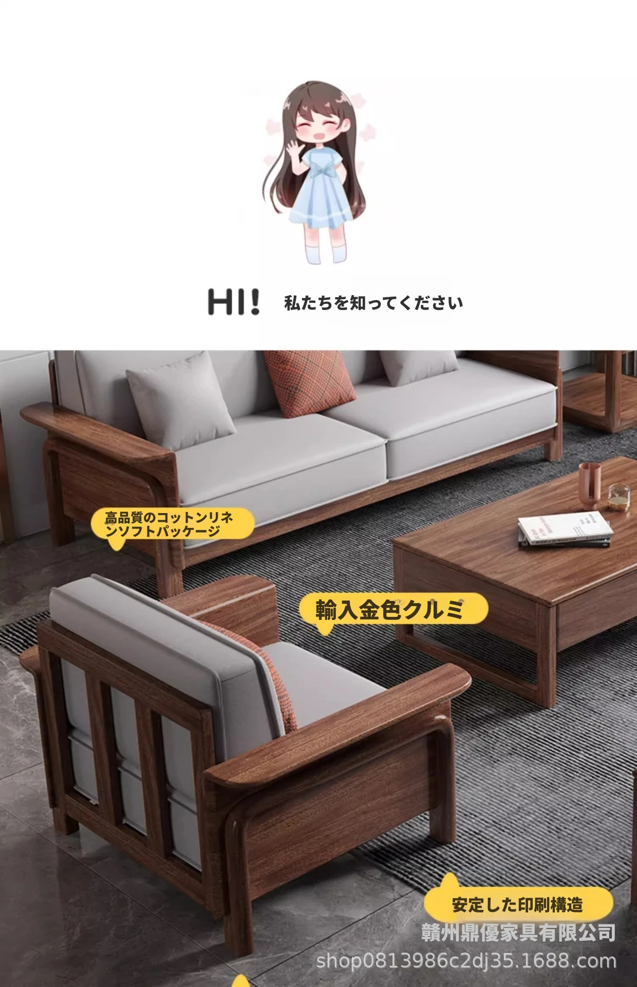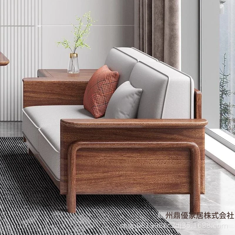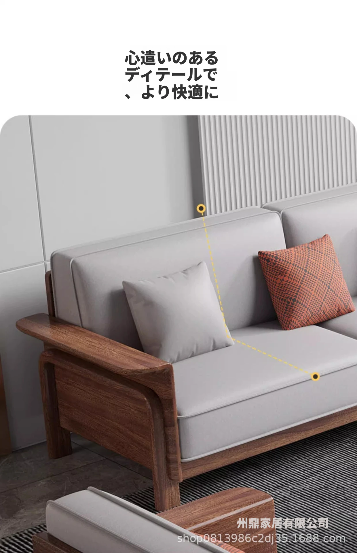 現代的ミニマリストスタイルのリビング用ソファ!ウォールナット無垢材使用の北欧風シングル・ダブル・スリーピースソファセット。高品質なファブリックで、スタイリッシュな空間を演出します!快適さとデザイン性を兼ね備えた一品です。