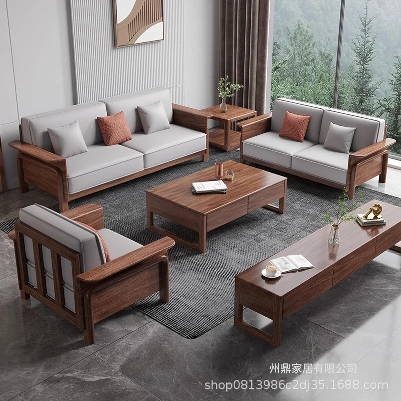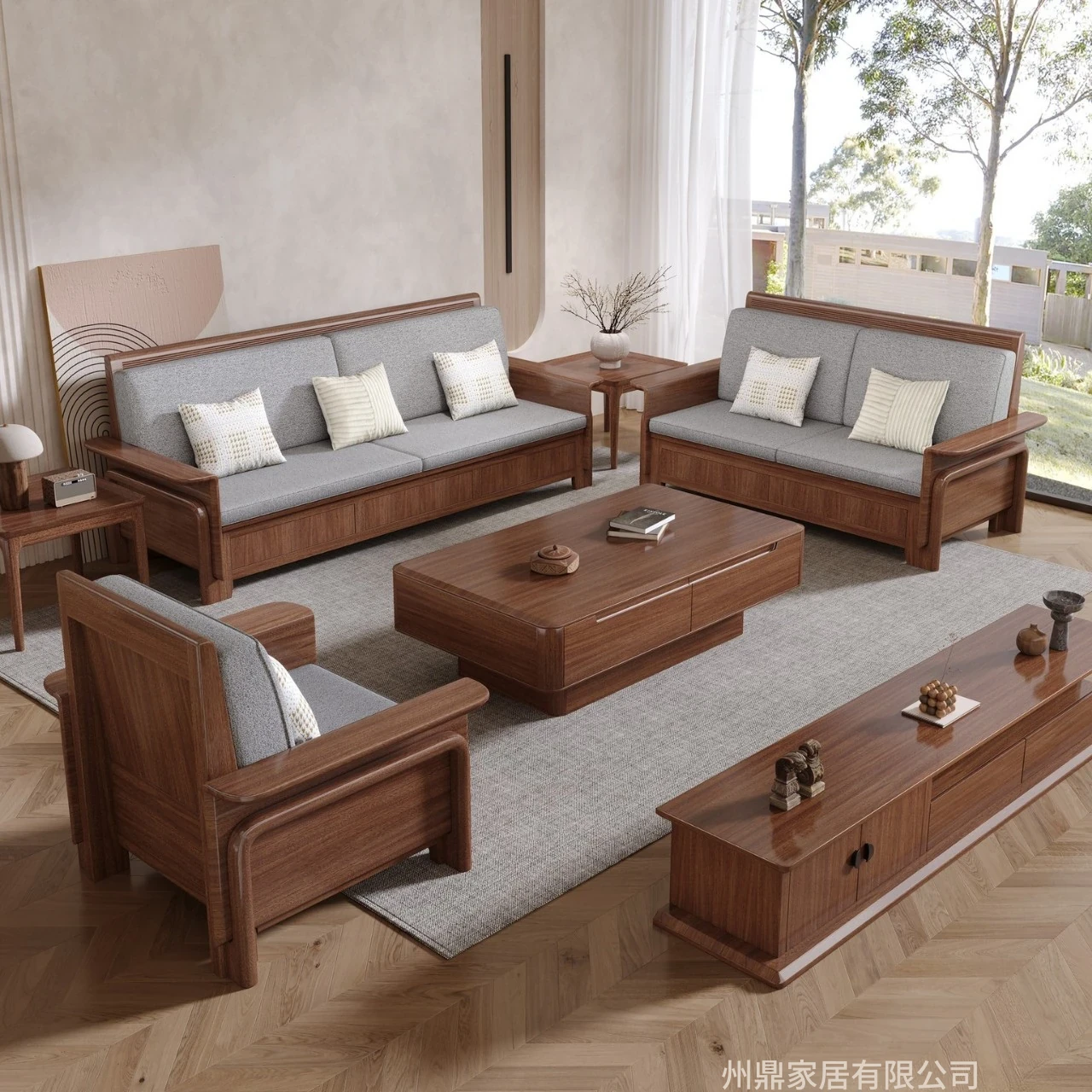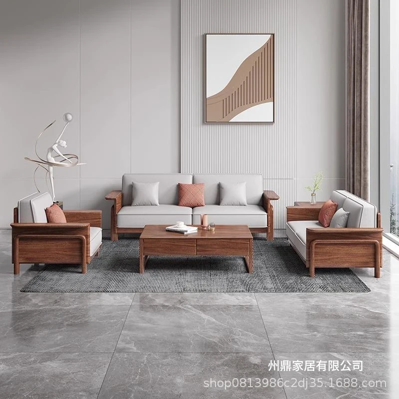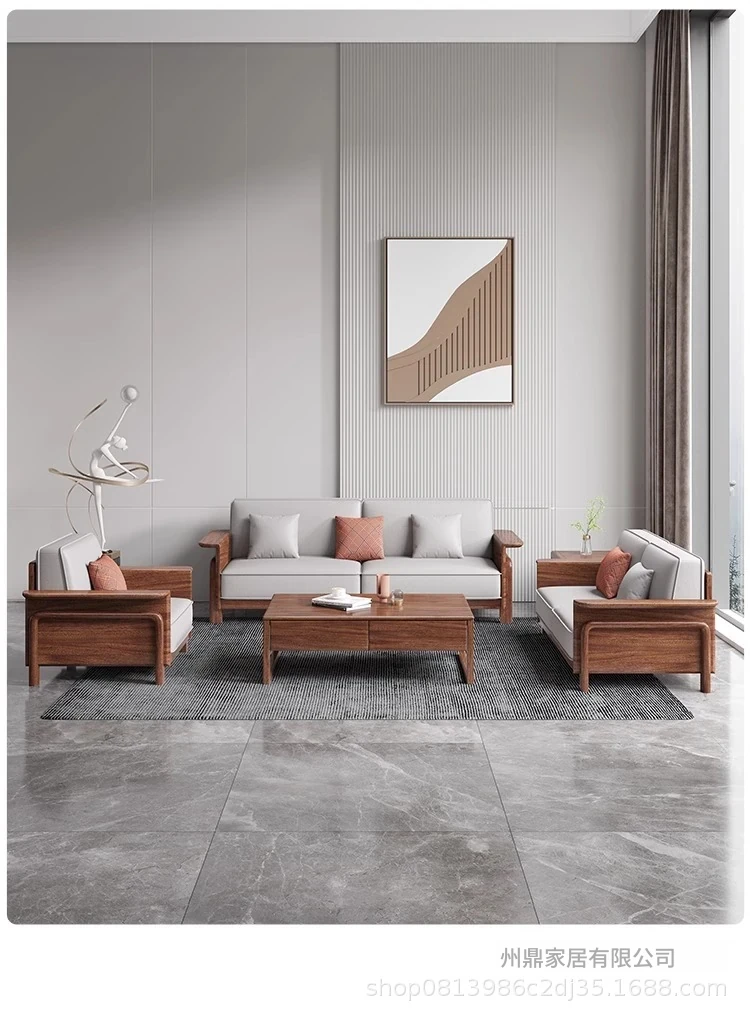 現代的ミニマリストスタイルのリビング用ソファ!ウォールナット無垢材使用の北欧風シングル・ダブル・スリーピースソファセット。高品質なファブリックで、スタイリッシュな空間を演出します!快適さとデザイン性を兼ね備えた一品です。