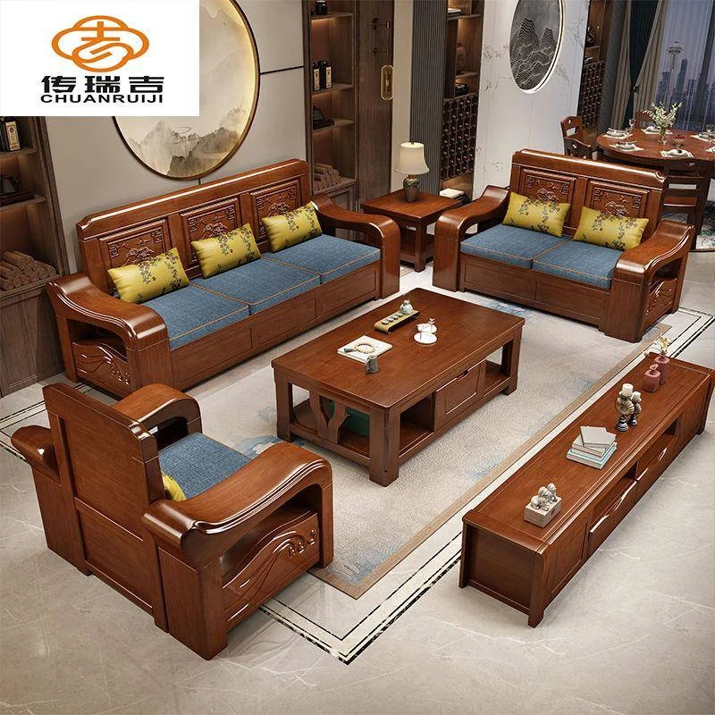 現代的な夏の小型収納、全て無垢材使用の711木製ソファセット!新中式デザインで、リビングをおしゃれに彩ります。冬でも温かく、心地良い空間を演出。お客様のニーズに応える高品質な家具です!