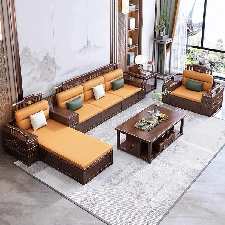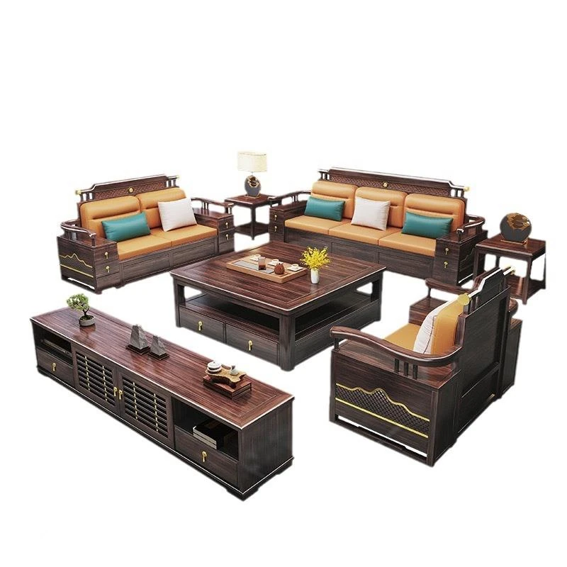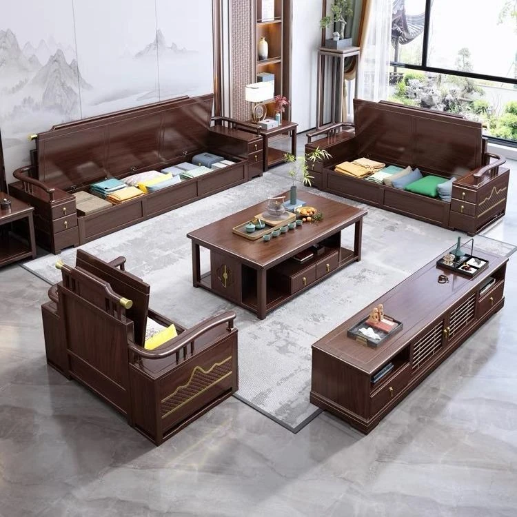 新中式デザインの高級天然木製ソファセット LJ-LY-WJ - 冬も夏も使える収納付きのリビング用コンビネーション、大小どちらの部屋にも最適!