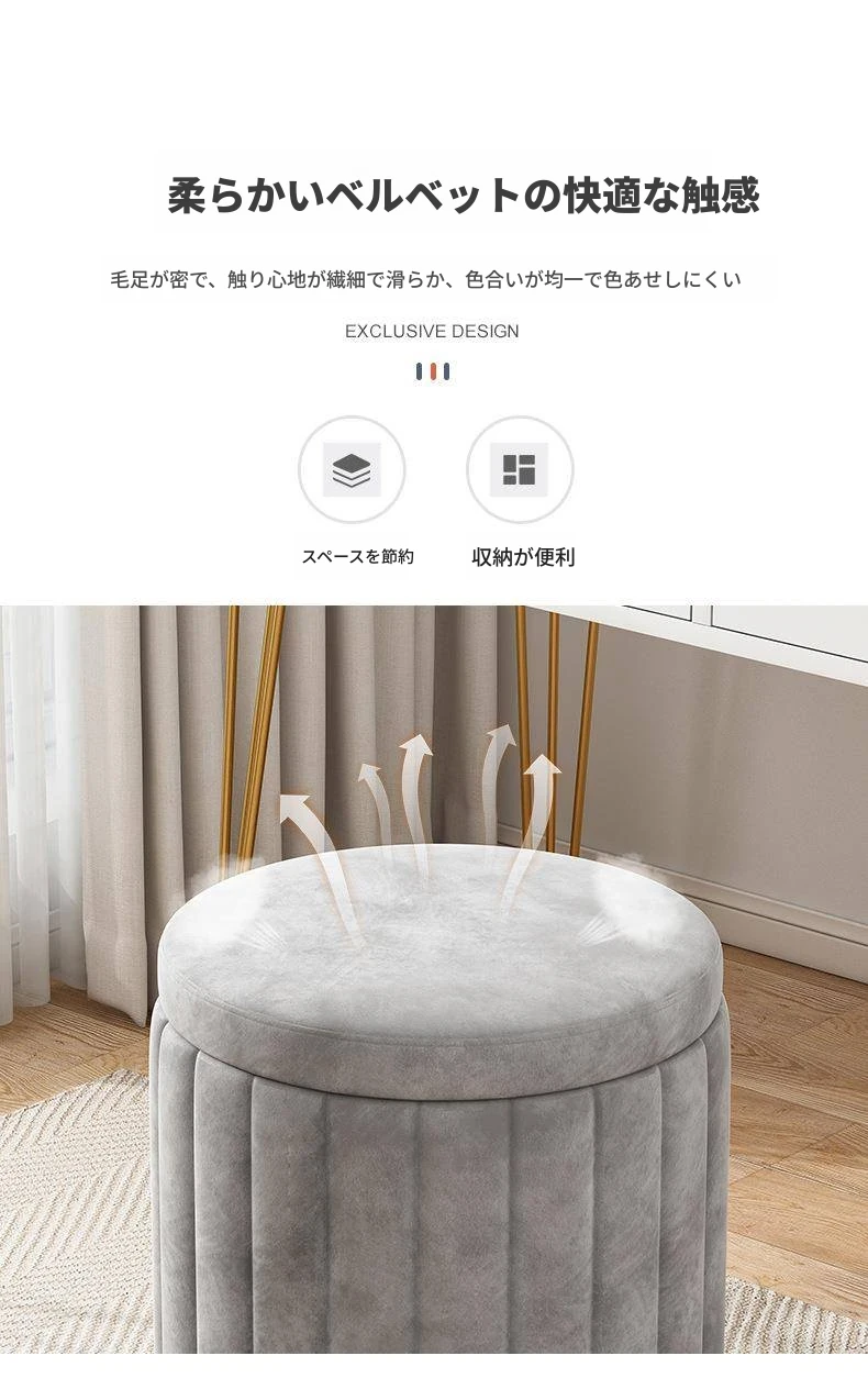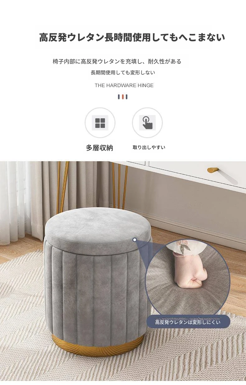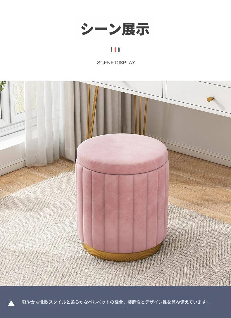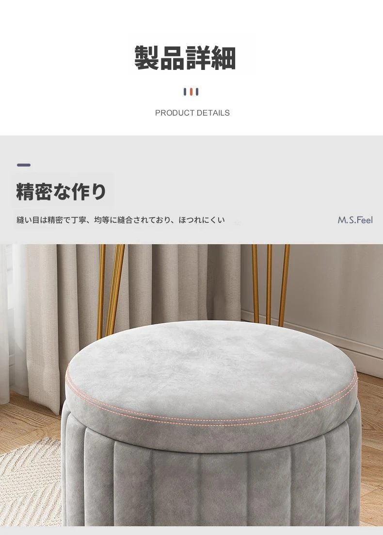 北欧スタイルの軽奢華な化粧スツール|可愛いインテリアにぴったりな丸型スツール|女性に人気のメイクアップチェア|おしゃれで使いやすい!あなたの寝室を華やかに彩ります!