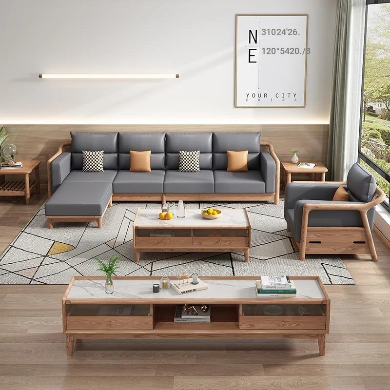 Nordic Solid Ash Wood Sofa - Minimalist Luxury Corner Sofa for Small and Large Living Spaces, Perfect for Home Use, Crafted from Durable White Ash Wood