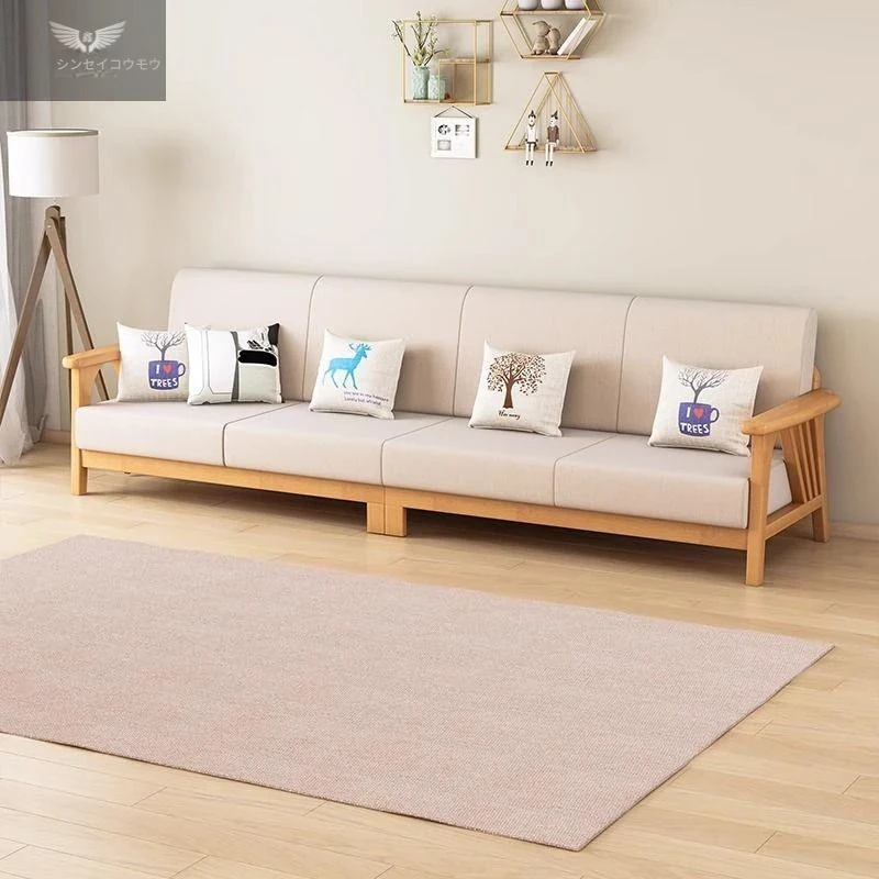 【ナチュラルウッド】4人掛けソファ 【輸入ラバーウッド】