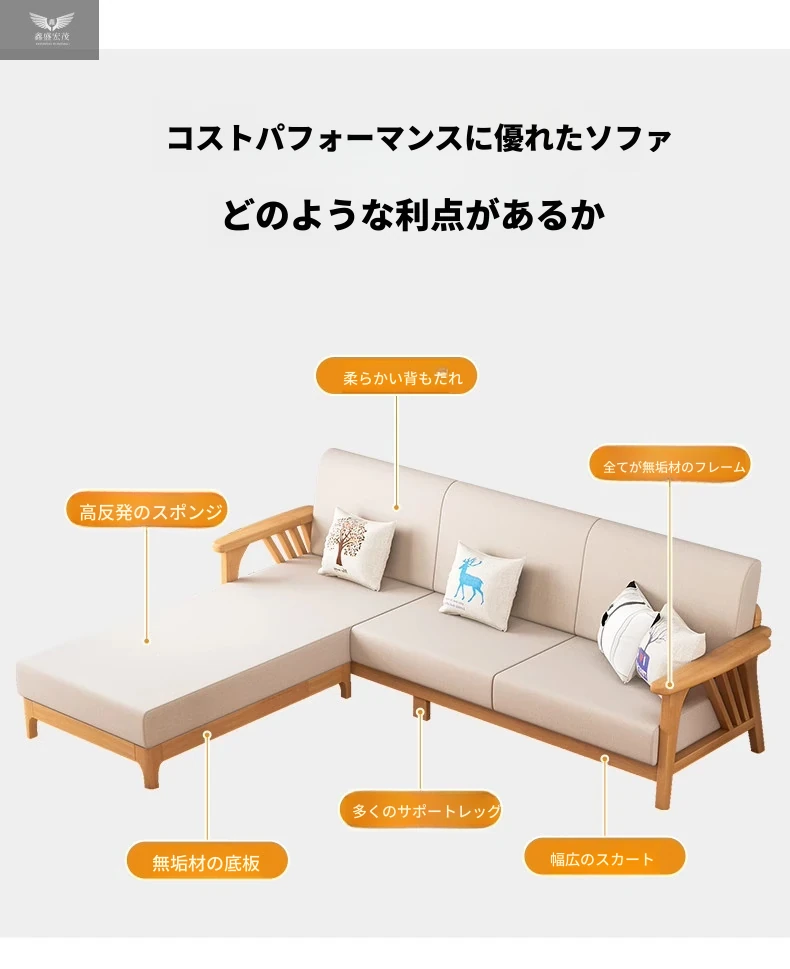 【ナチュラルウッド】4人掛けソファ+オットマン
