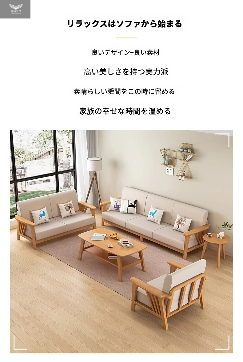 【ナチュラルウッド】1人掛けソファ+2人掛けソファ+3人掛けソファ+2段コーヒーテーブル