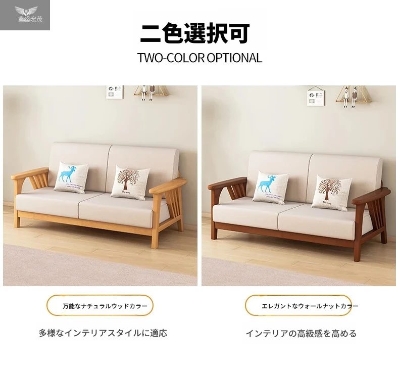 【ナチュラルウッド】2人掛けソファ 【輸入ラバーウッド】