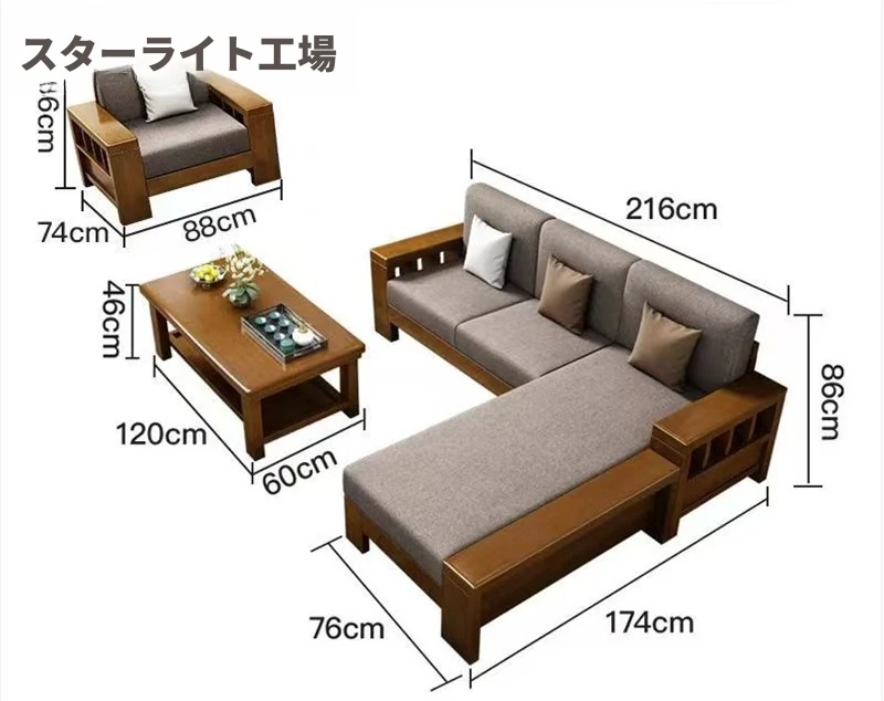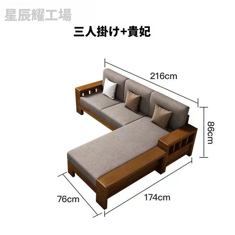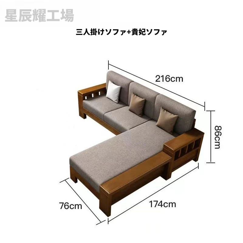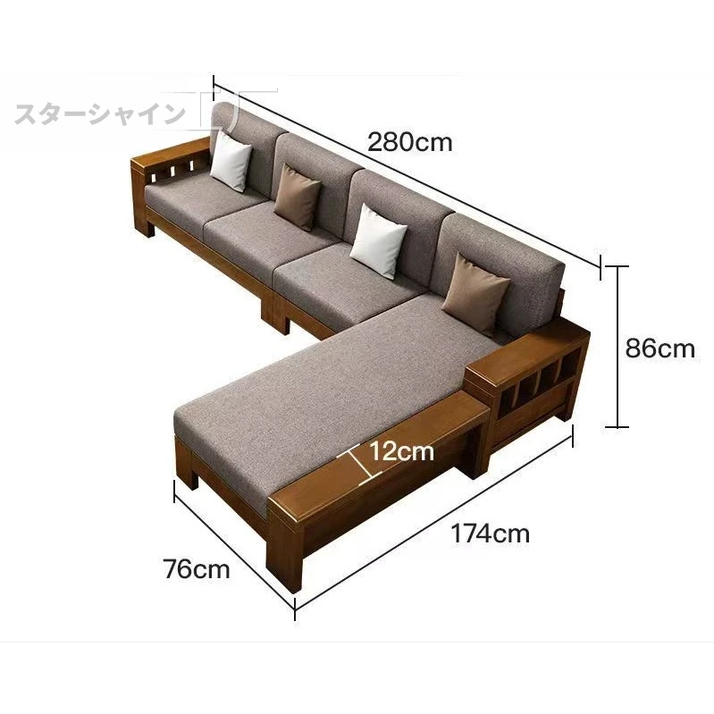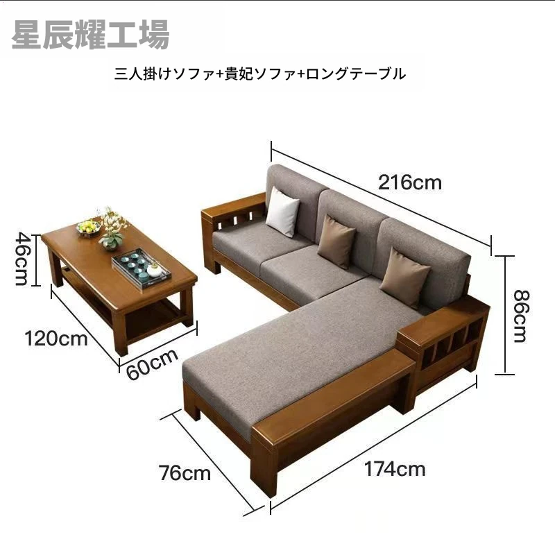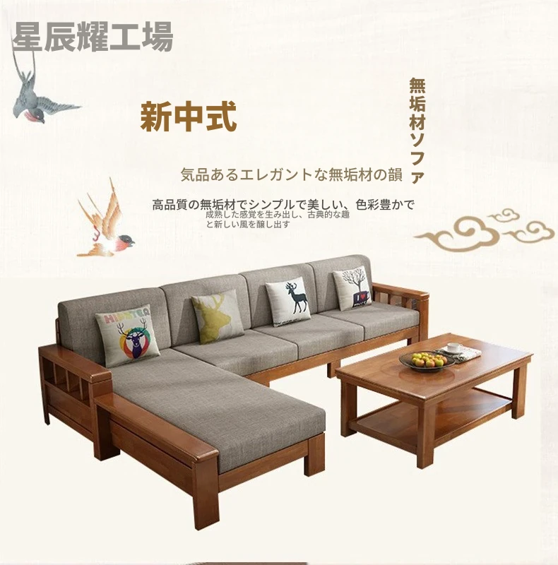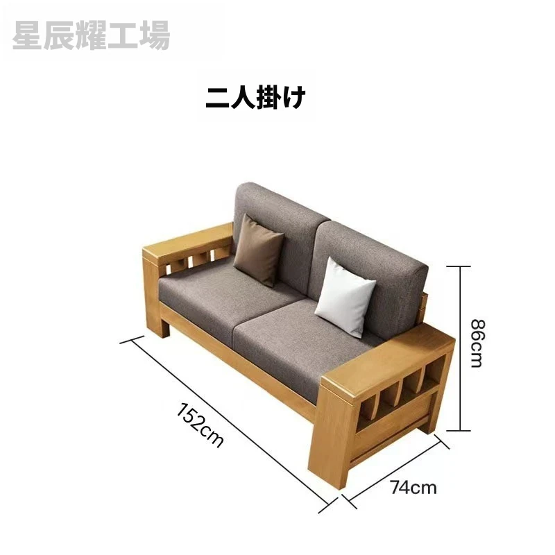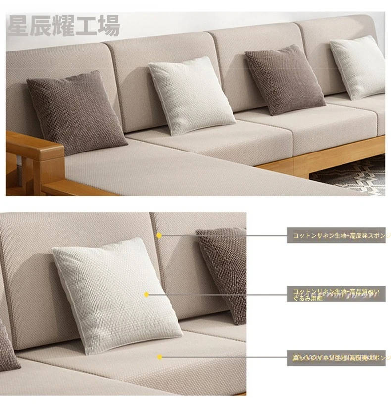 北欧スタイルの実木ソファ小型セット - 現代的なミニマリズムと高級感を兼ね備えたL字型リビング家具、オーク材使用で耐久性抜群!快適な座り心地で、あなたのリビングをスタイリッシュに演出します。