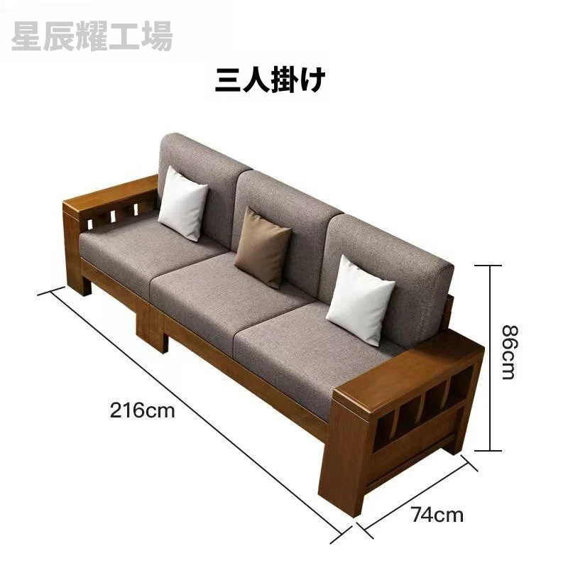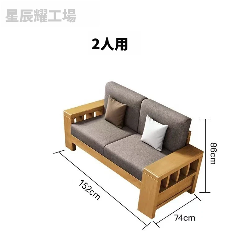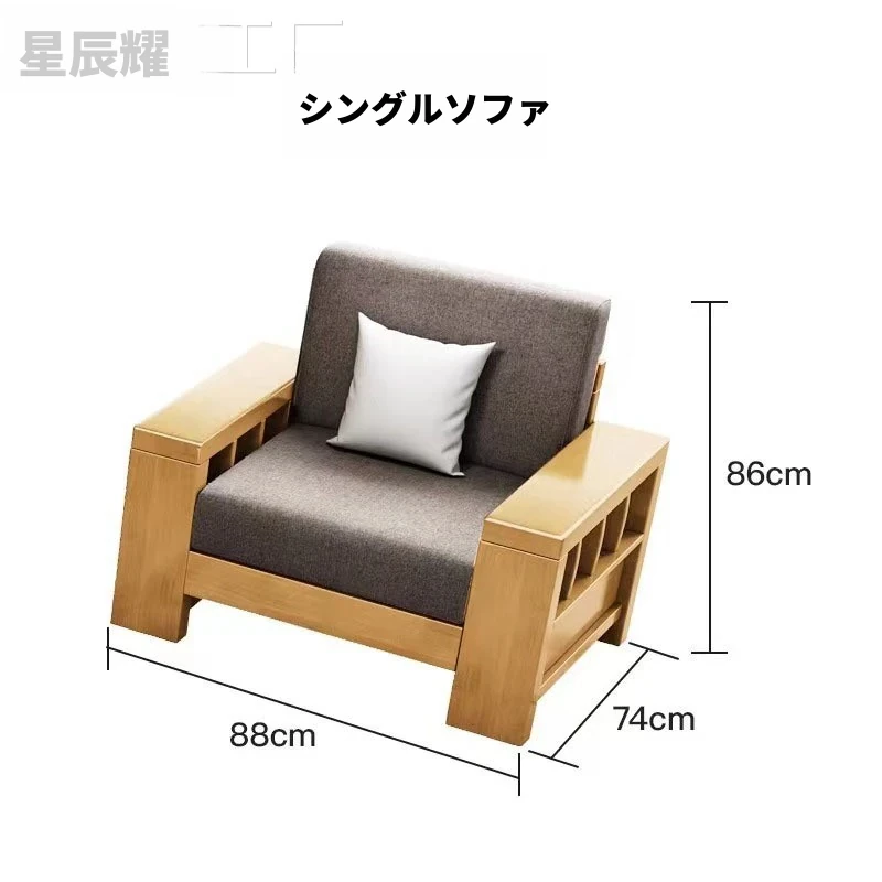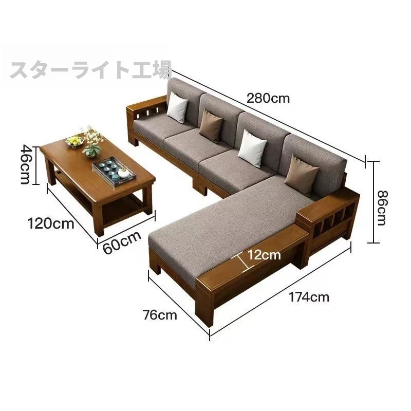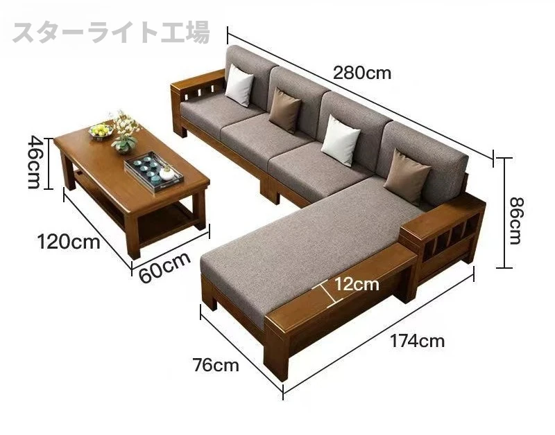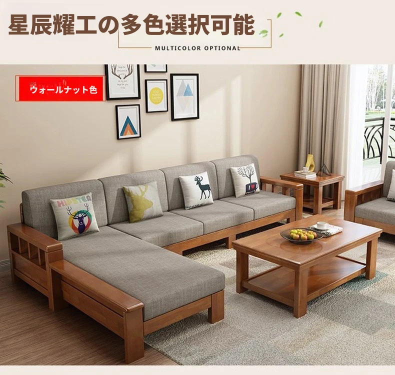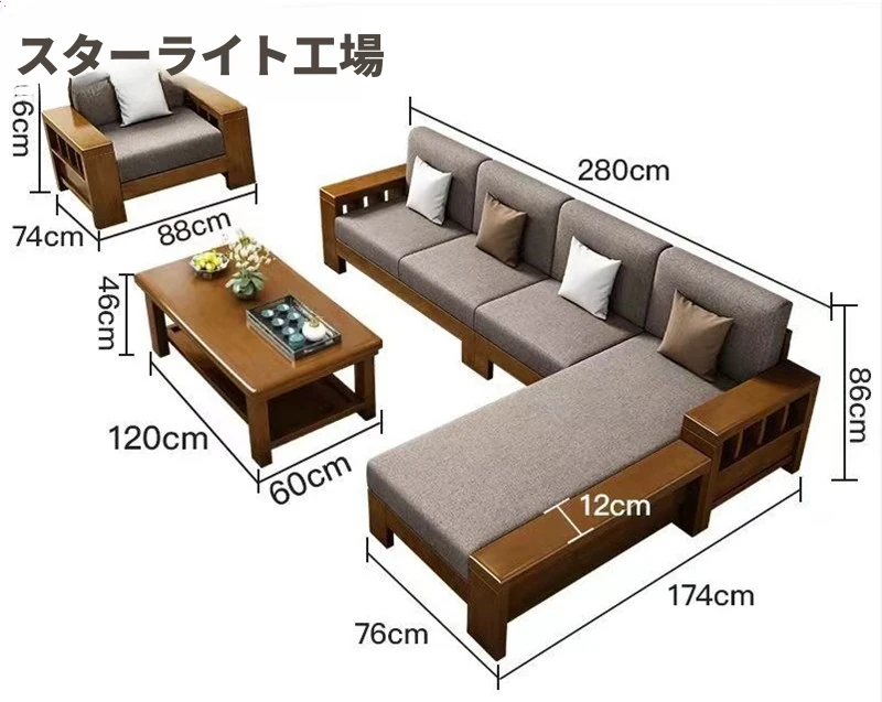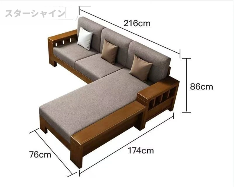 北欧スタイルの実木ソファ小型セット - 現代的なミニマリズムと高級感を兼ね備えたL字型リビング家具、オーク材使用で耐久性抜群!快適な座り心地で、あなたのリビングをスタイリッシュに演出します。