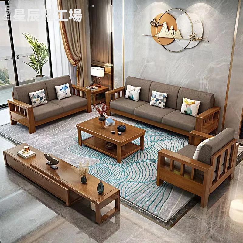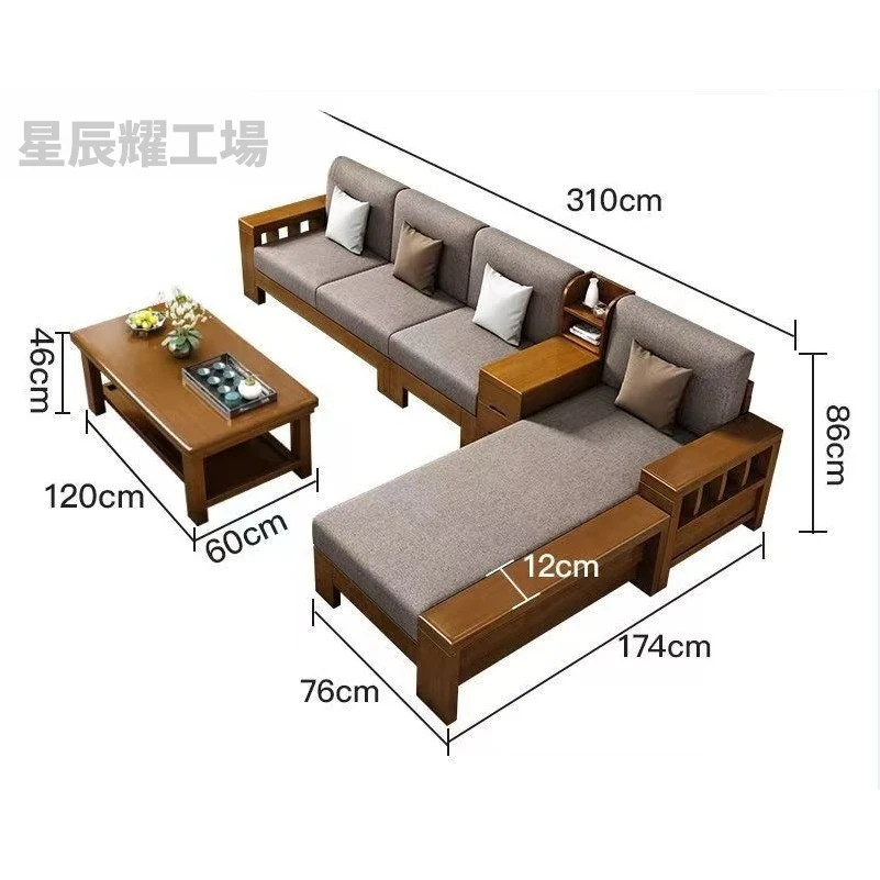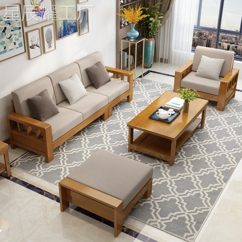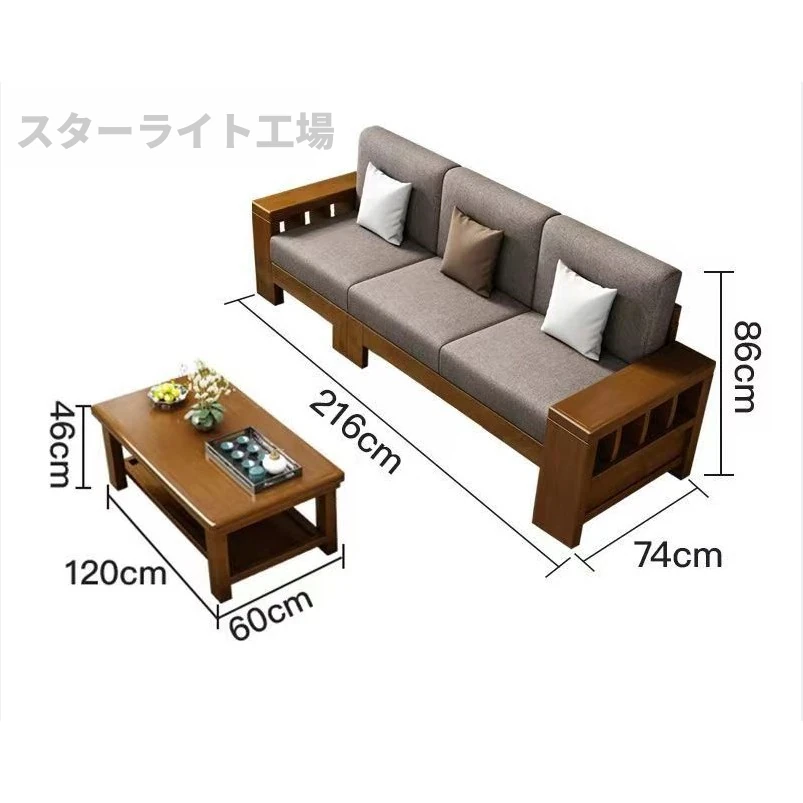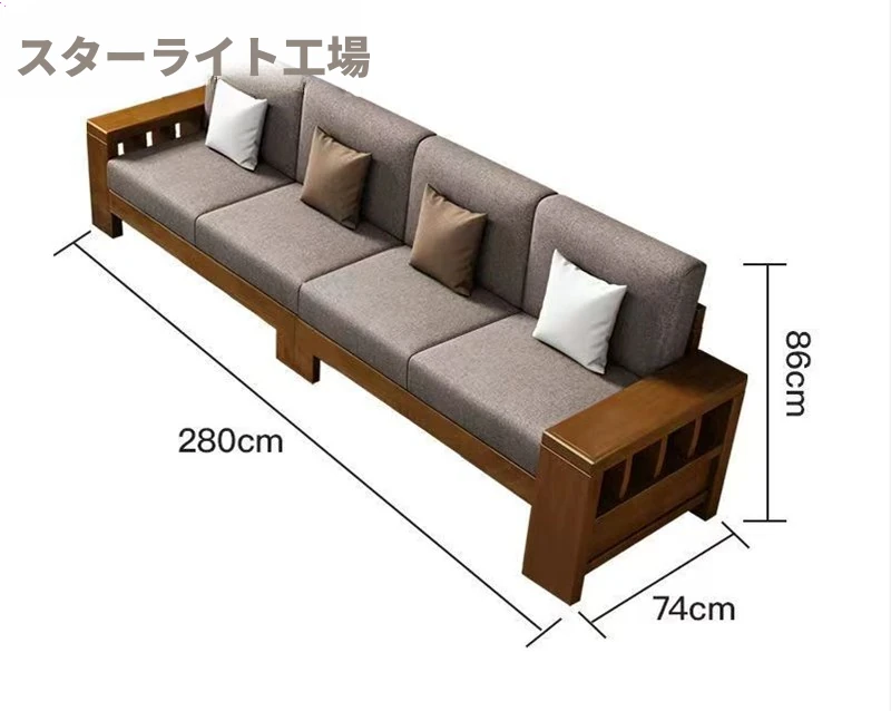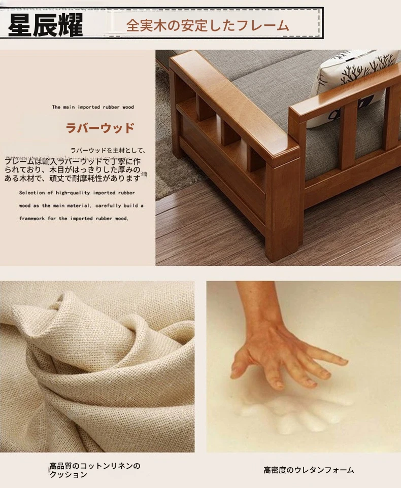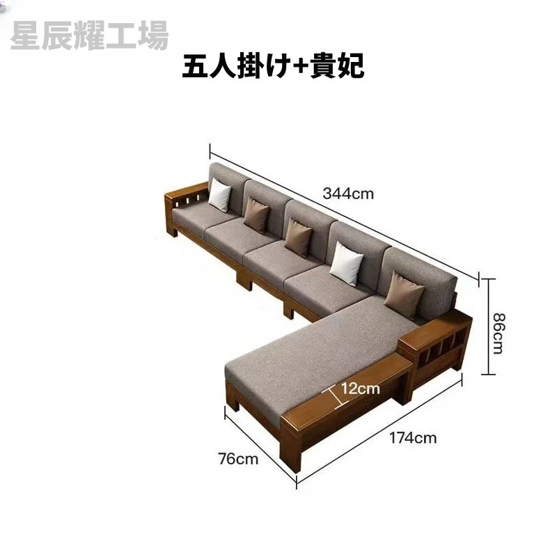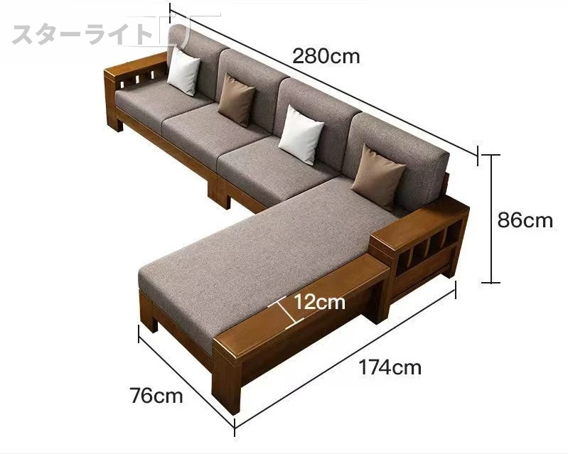 北欧スタイルの実木ソファ小型セット - 現代的なミニマリズムと高級感を兼ね備えたL字型リビング家具、オーク材使用で耐久性抜群!快適な座り心地で、あなたのリビングをスタイリッシュに演出します。