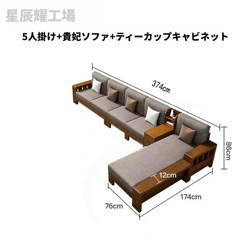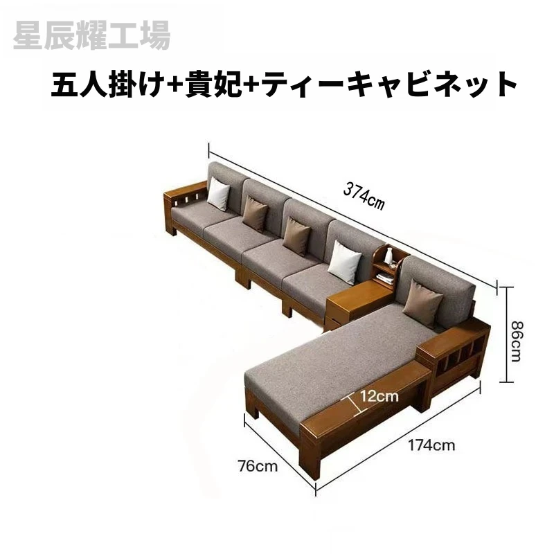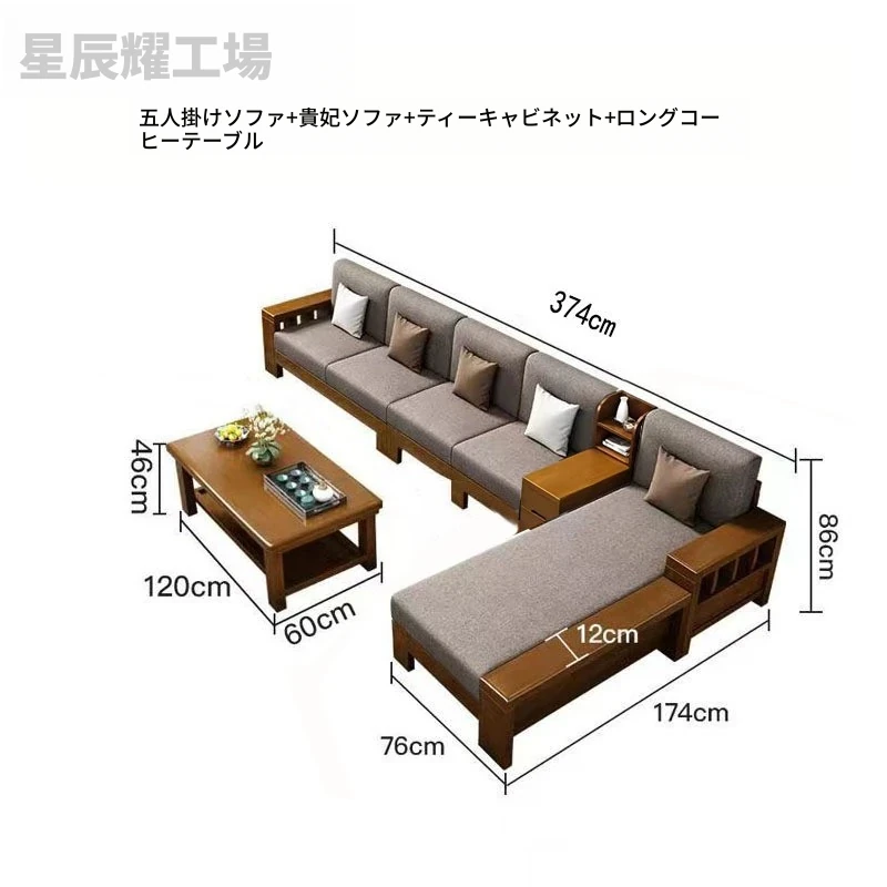 5人用ソファ+貴妃+ロングコーヒーテーブル+ティーキャビネット