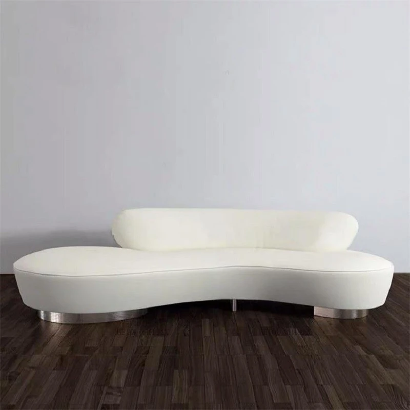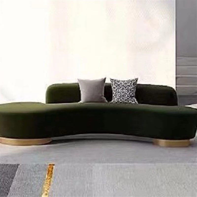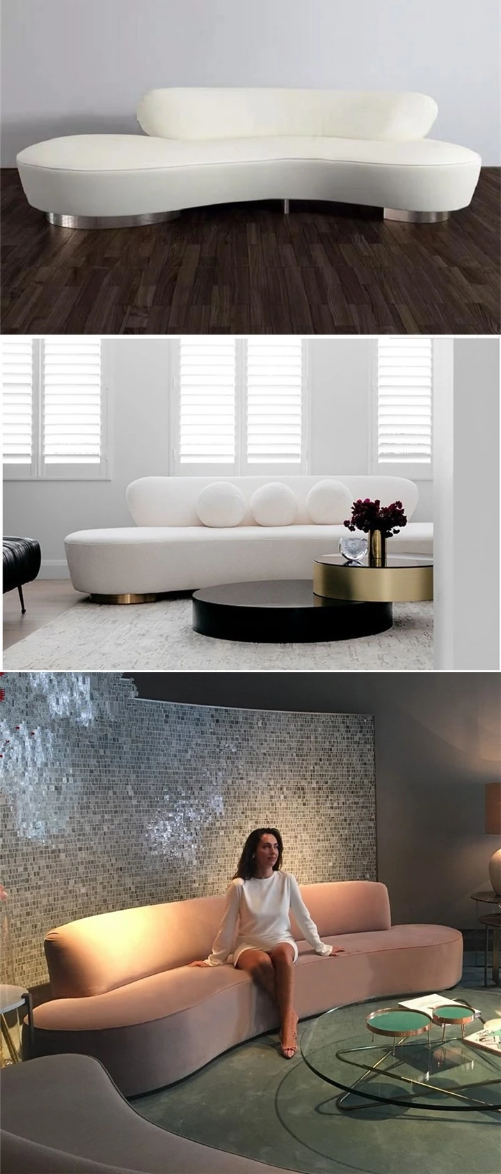 北欧スタイルの美容院向けアーチ形モダン3人掛けソファ | おしゃれなアパレルショップにぴったりなユニークなデザインの布製マルチソファ!お客様を引きつける魅力的な空間を演出します。