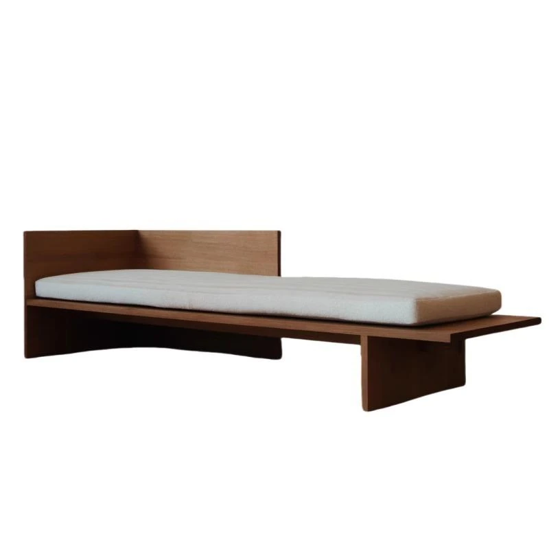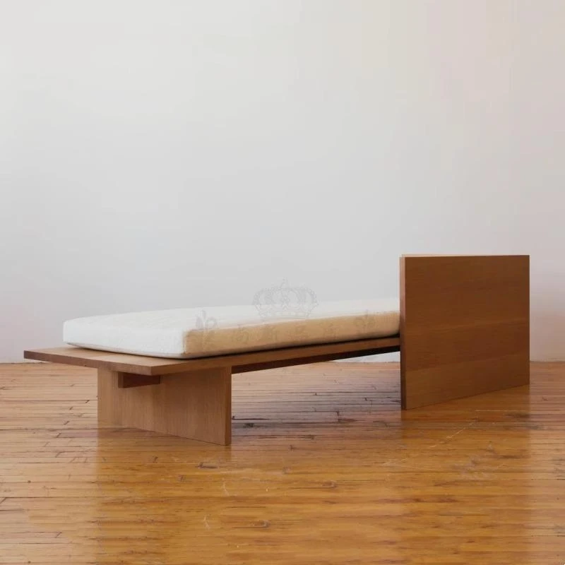 北欧スタイルの全木製貴妃椅子 - 和の美を感じるシンプルモダンなリビングソファ、小さな部屋にもぴったり!侘寂の魅力を持つ洗練されたデザインで、心地よいひとときをお届けします。