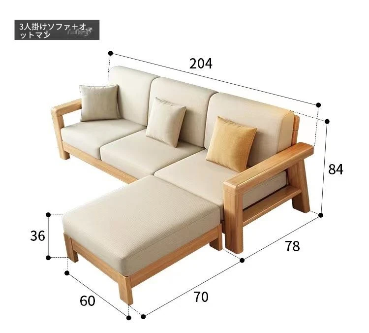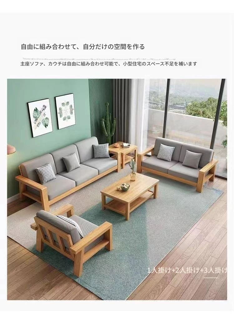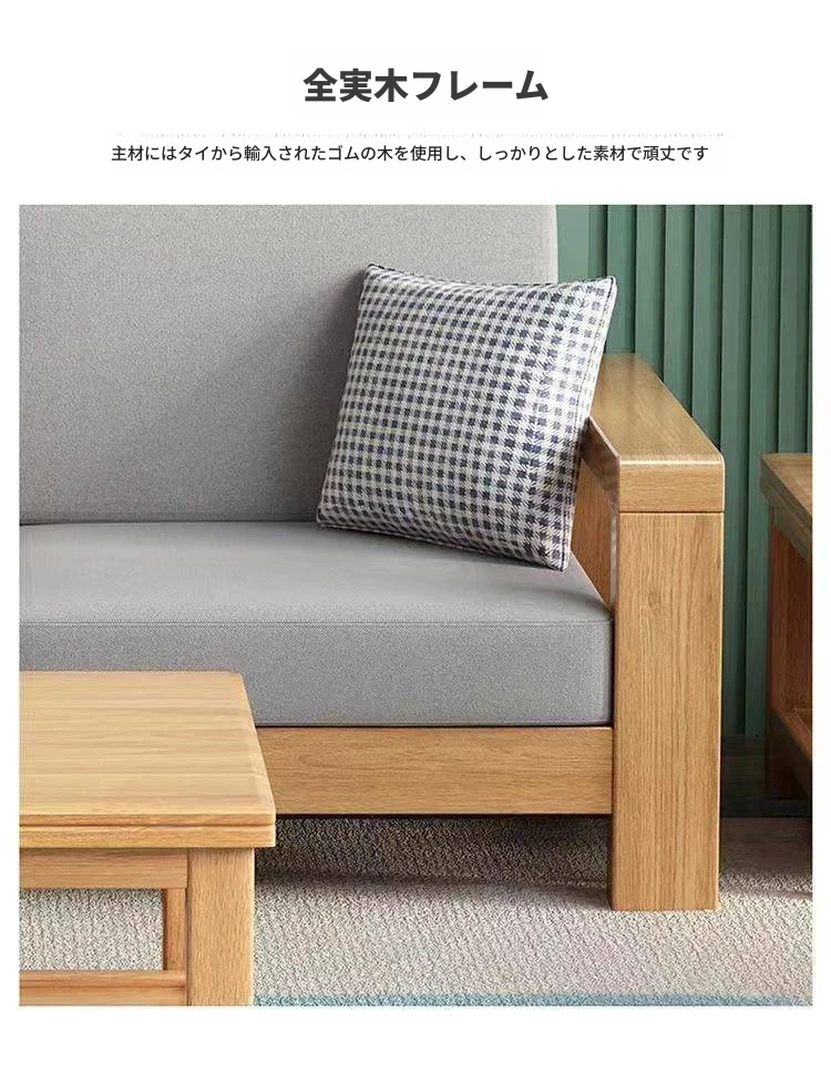 北欧スタイルの実木ソファ - 3人掛け、洗濯可能な布製、コンパクトな小型リビングに最適なシンプルでモダンなデザイン。おしゃれな原木ソファで快適な空間を演出しましょう!