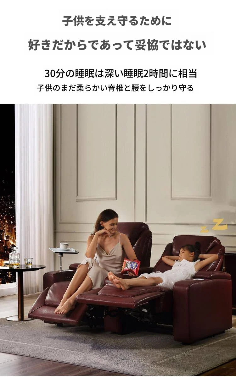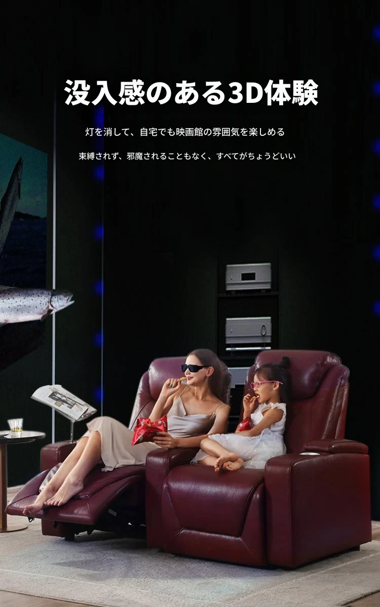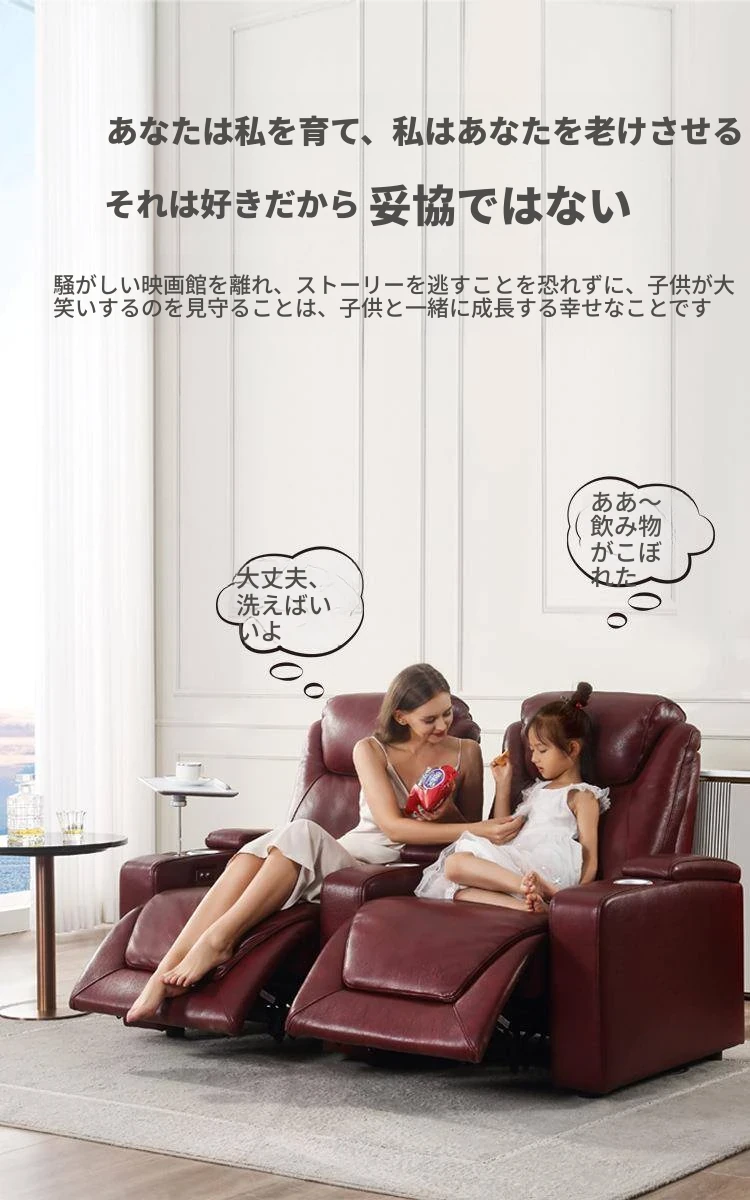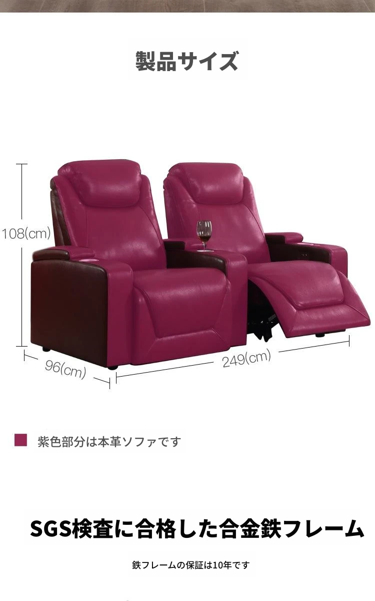高級別墅向け!高背設計の本革ホームシアターソファ - 贅沢なレザーと電動機能で、快適な映画体験を実現!