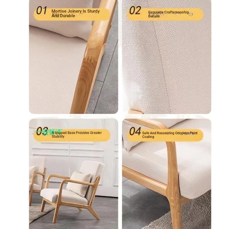 QY Modern Minimalist Nordic Fabric Leisure Removable Single Sofa for Small Spaces – Perfect for Living Rooms and Balconies with Solid Wood Table and Chair Set