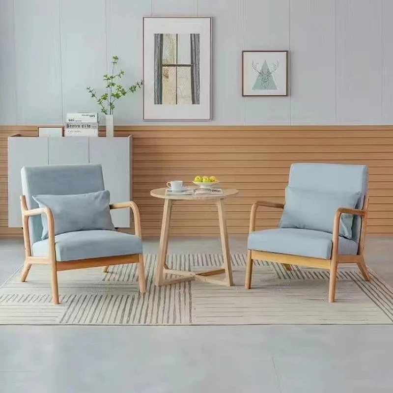 QYモダンミニマリスト北欧スタイル洗える布製カジュアル一人用ソファー - 小スペースに最適!リビングやバルコニーにぴったりな天然木テーブル&チェアセット!おしゃれで機能的な空間を演出します。