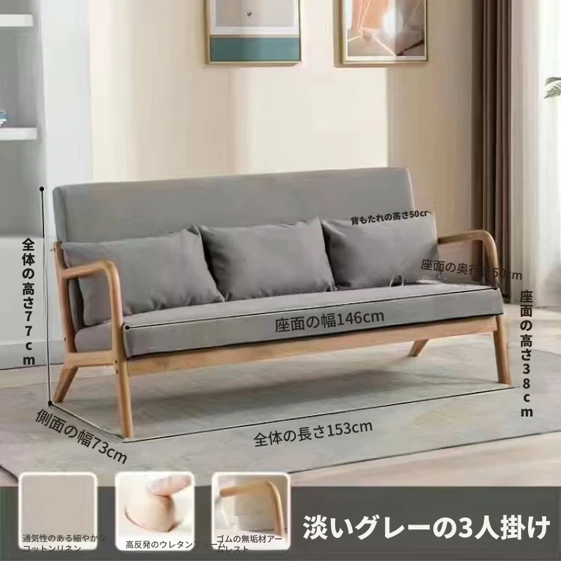 浅灰色【コットンリネン】取り外し可能、クッション付き