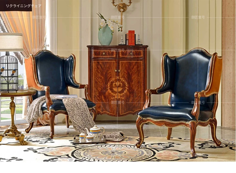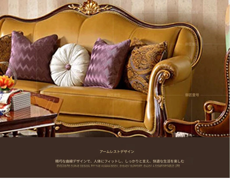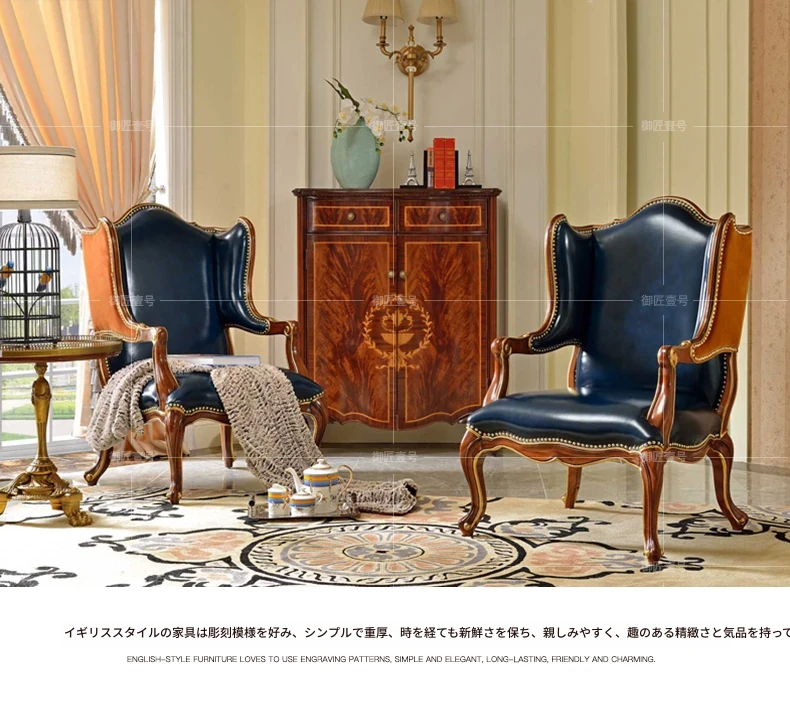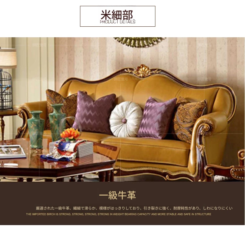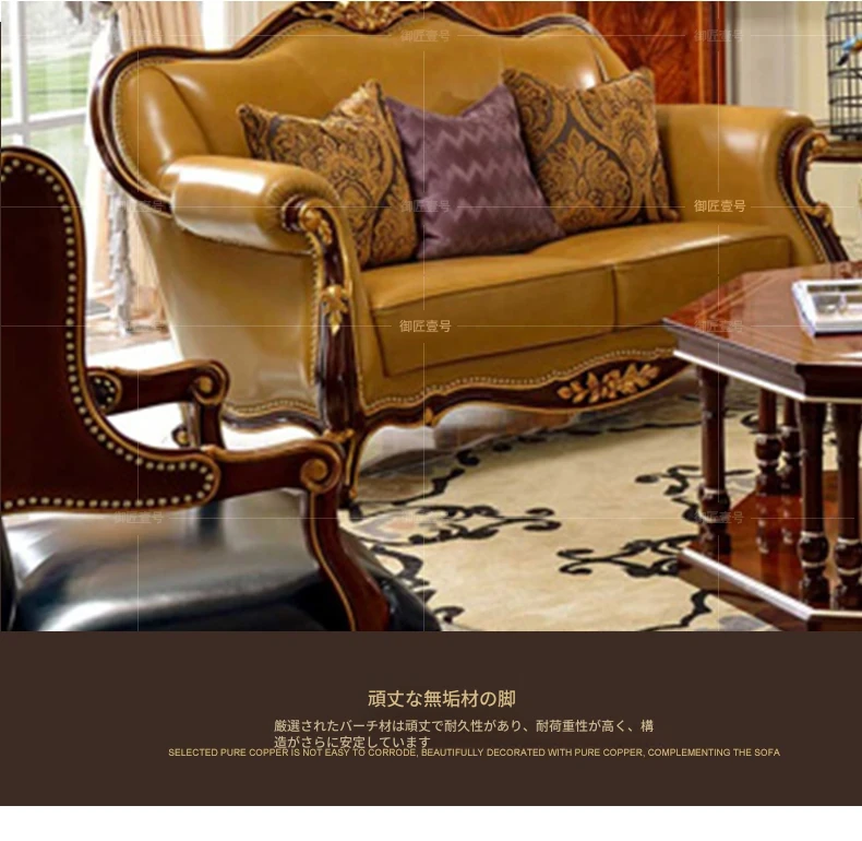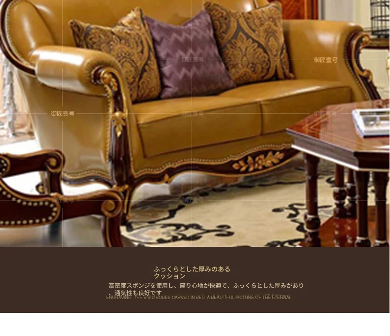 御匠壹号 英国風ヴィラのリビング家具 大型実木彫刻入り本革ソファ3人掛けセット - 上質なデザインで贅沢な空間を演出する、居心地抜群のソファです!