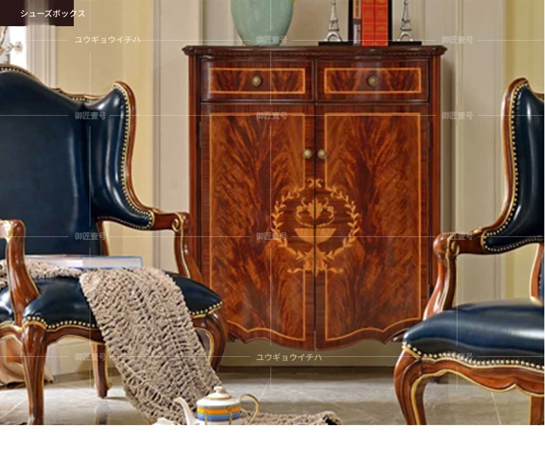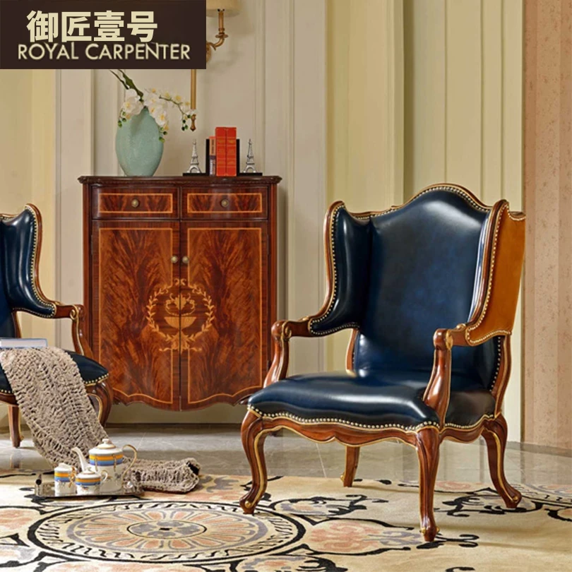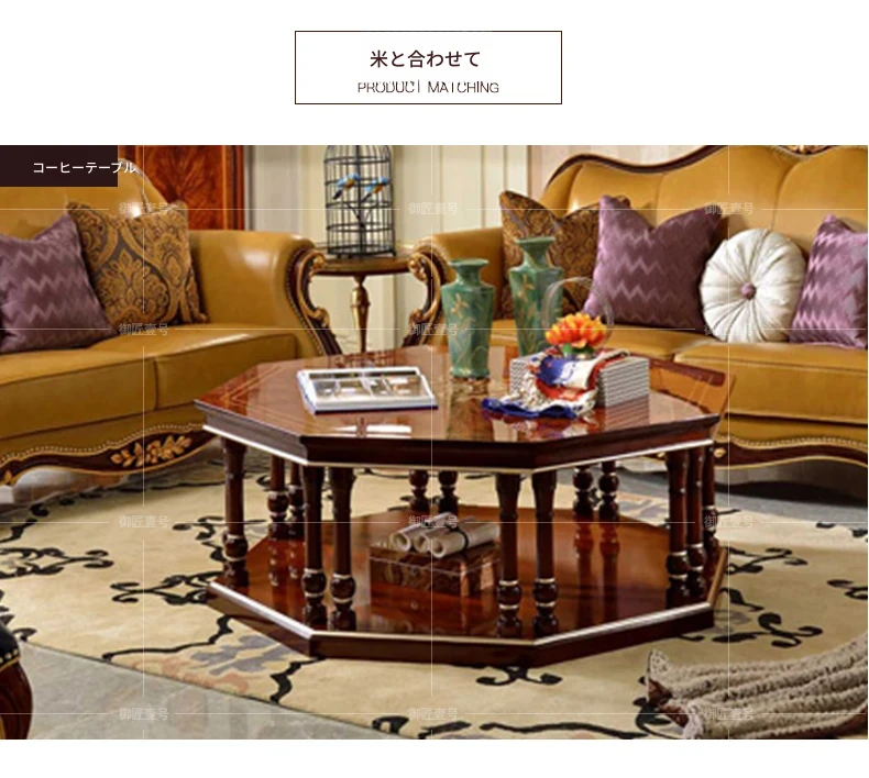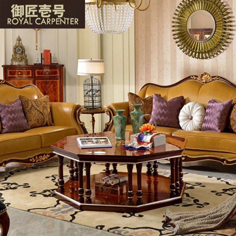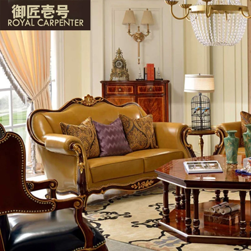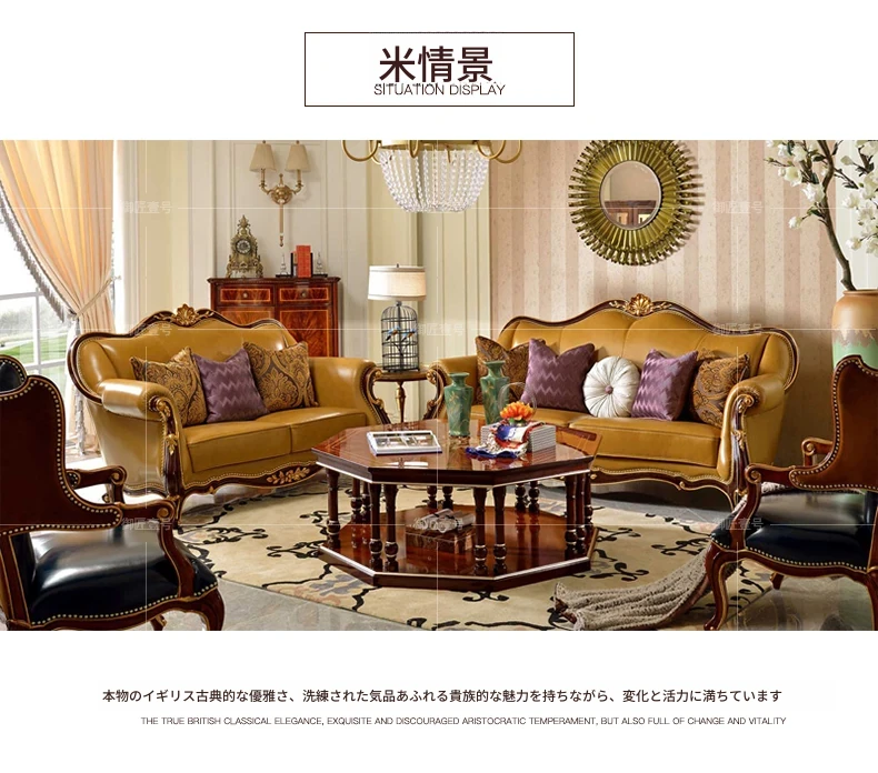 御匠壹号 英国風ヴィラのリビング家具 大型実木彫刻入り本革ソファ3人掛けセット - 上質なデザインで贅沢な空間を演出する、居心地抜群のソファです!