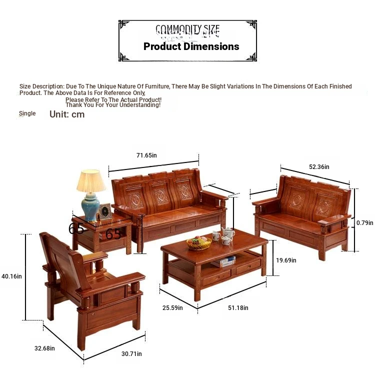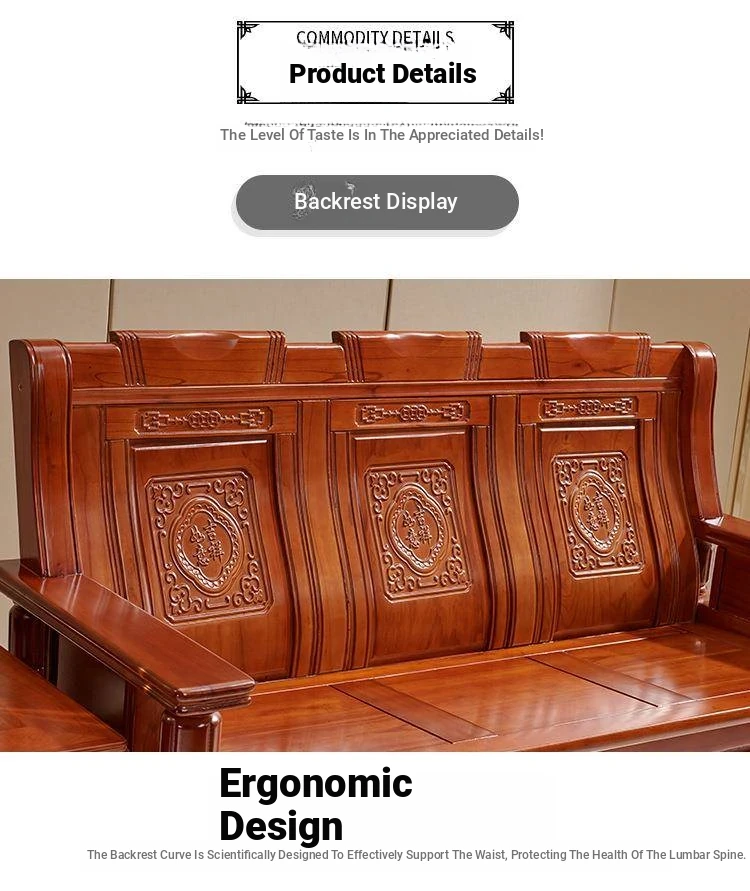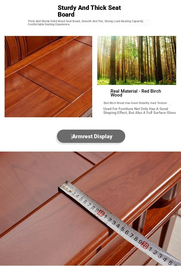 Solid Wood Sofa Set for Small Spaces - Versatile New Chinese Antique Style for Winter & Summer, Ideal for Living Rooms, Offices, and Budget-Friendly Rural Homes.