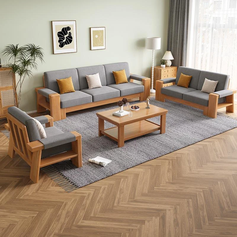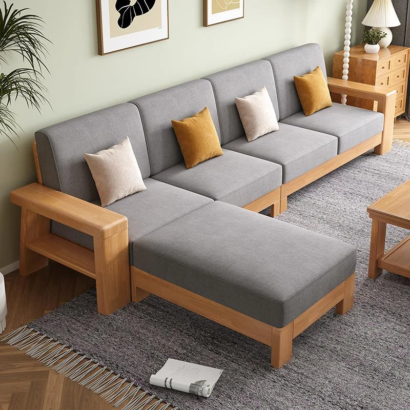 全実木製ソファセット|ナチュラルなシンプルさと軽やかな贅沢感|冬夏両用の大リビング向けコーナー&フェイスタイプソファ|広々とした空間に最適!