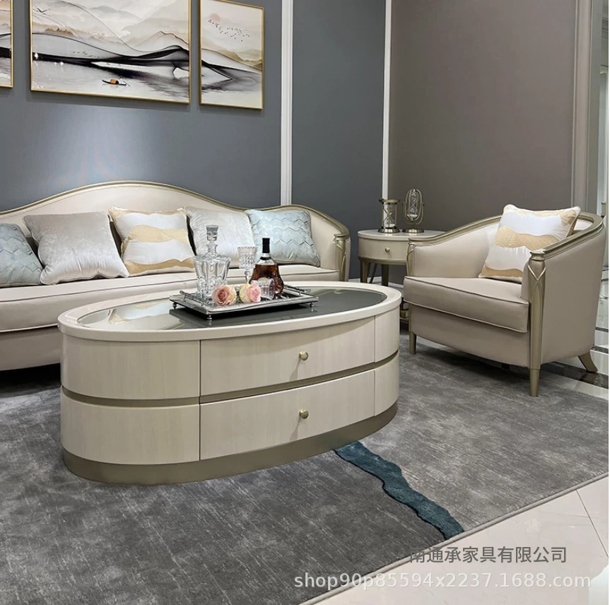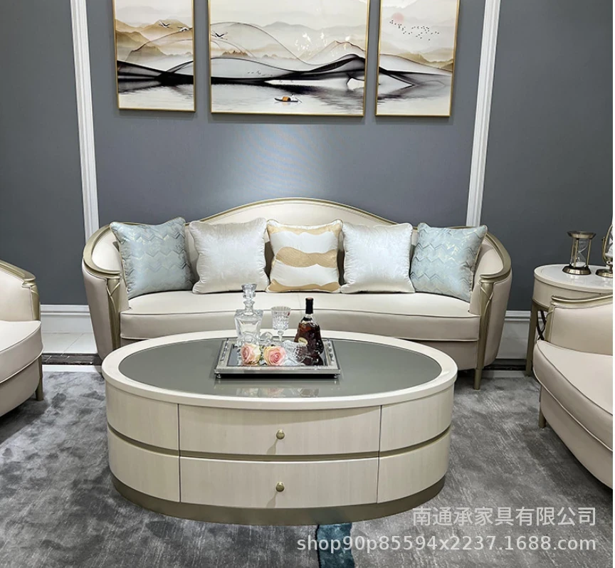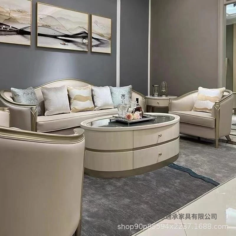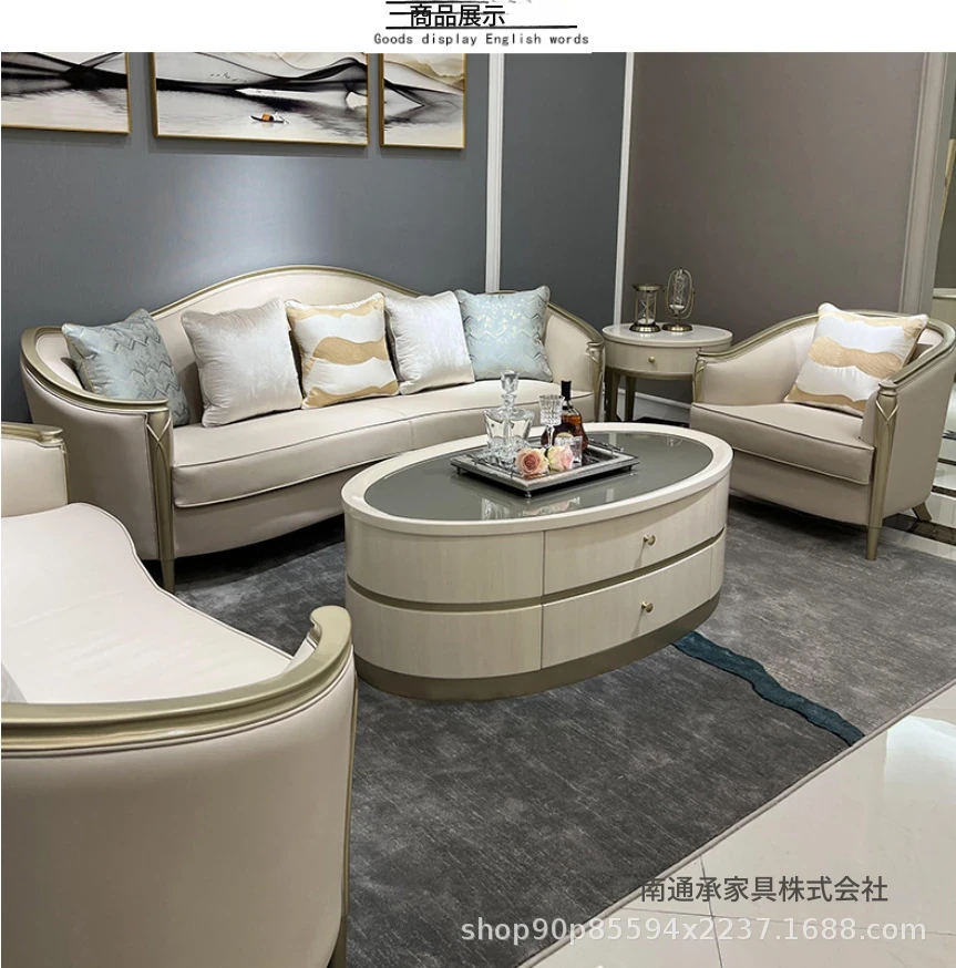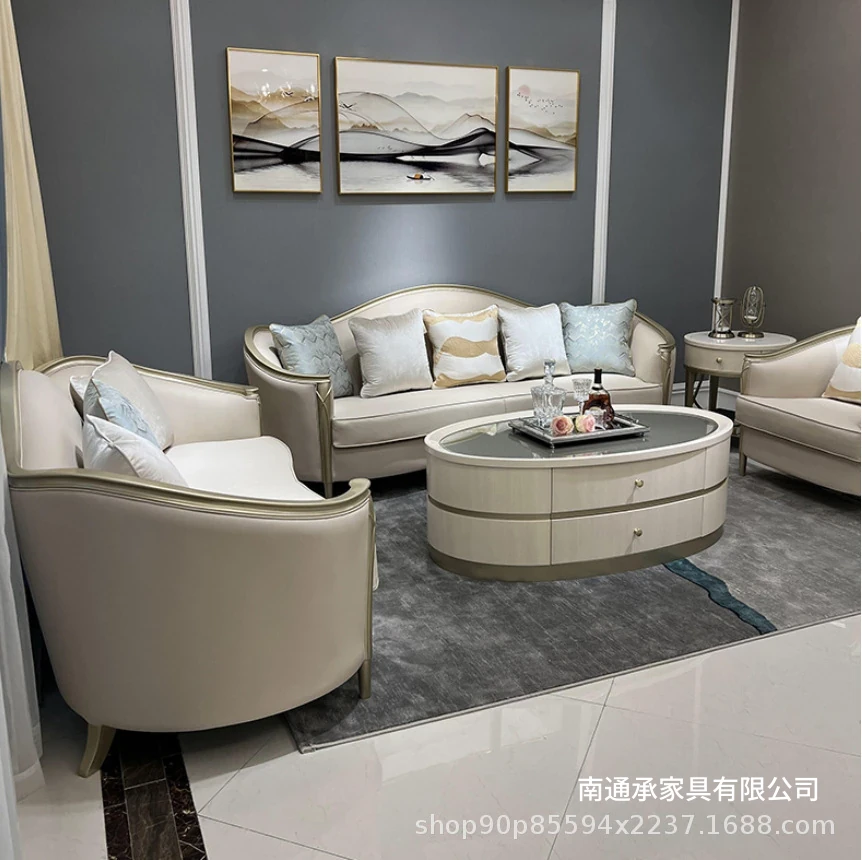 アメリカンスタイルのラグジュアリーソファ|ヨーロピアン真皮ソファ|123型フレンチスタイル|無垢材使用のシンプル欧風布製リビングルーム用家具|美しい彫刻デザインで上質な空間を演出!