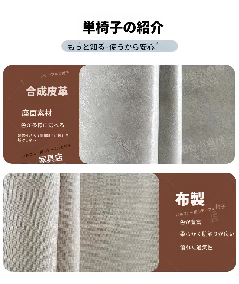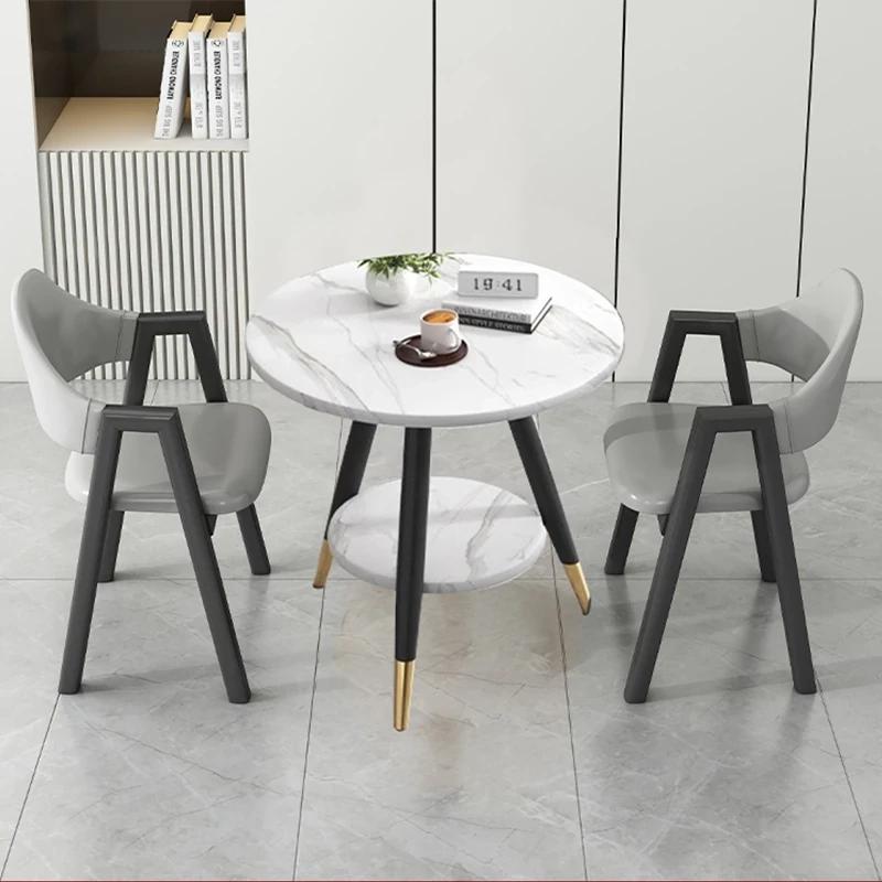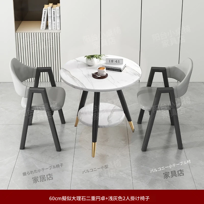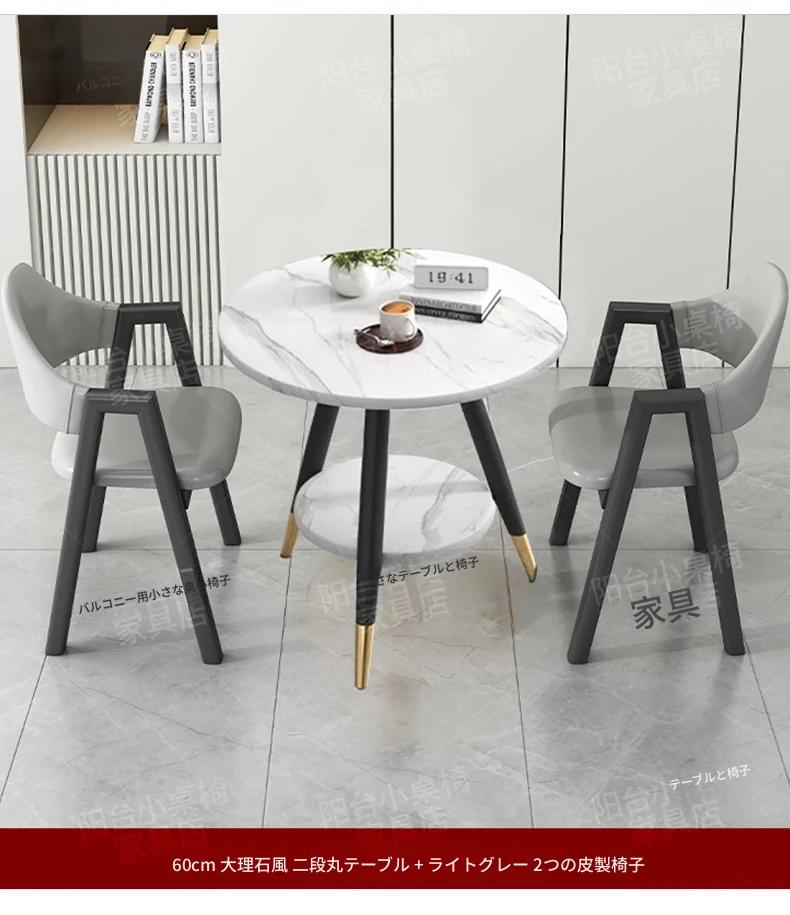 淡灰色2人用レザー椅子+60仿大理丸テーブル