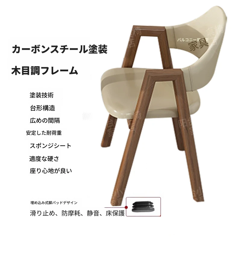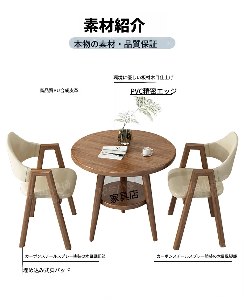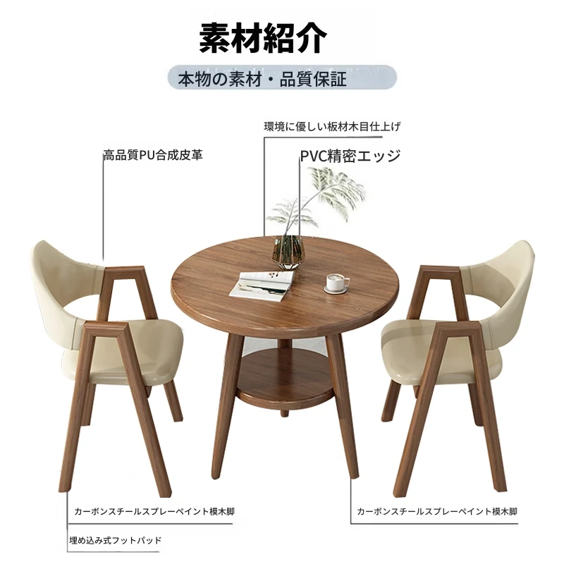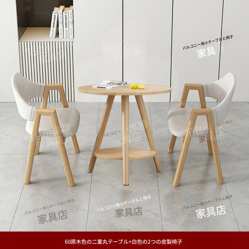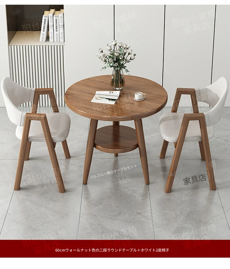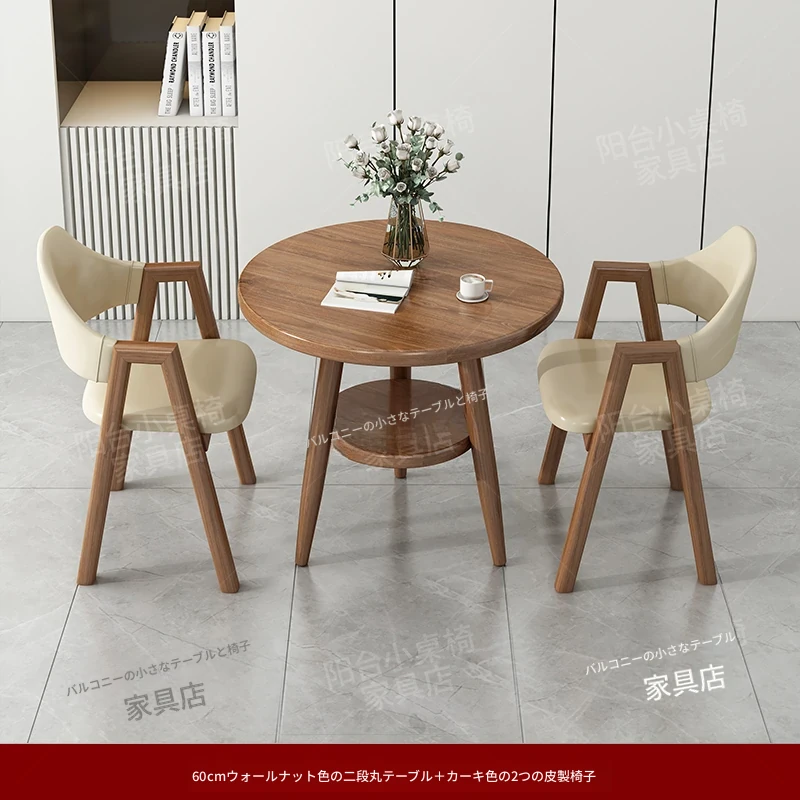 乳白色2人用レザー椅子+60胡桃色丸テーブル