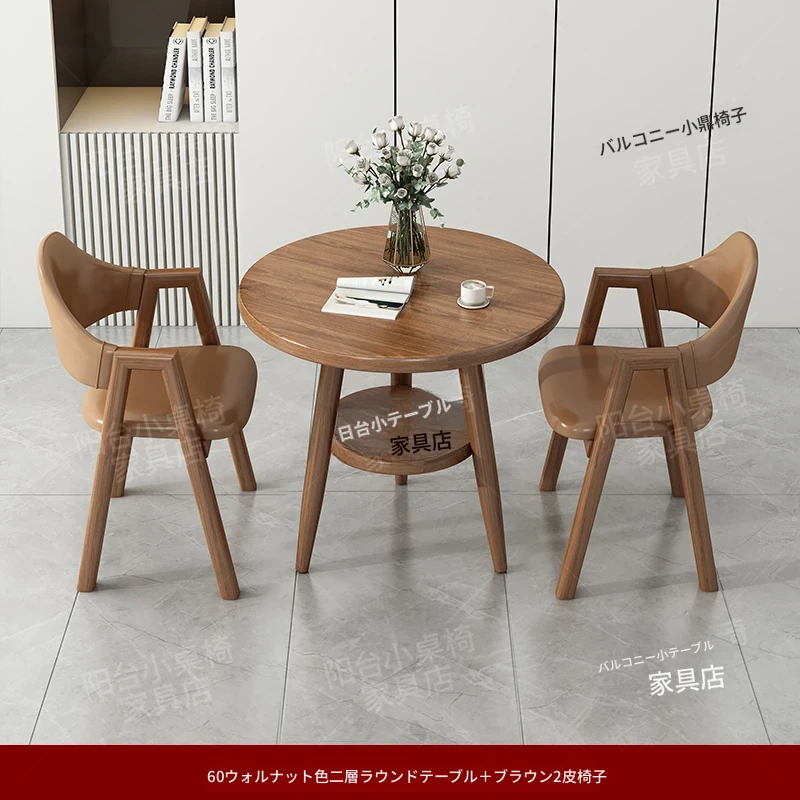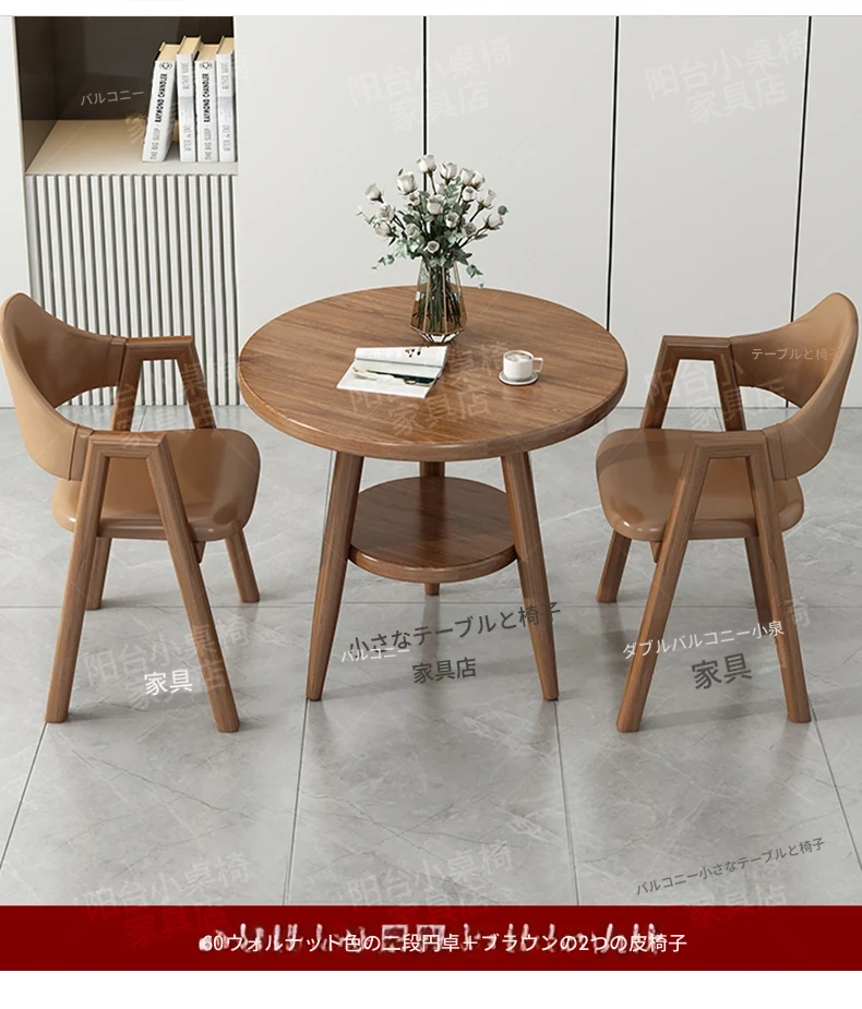淡ブラウン色2人用レザー椅子+60胡桃色丸テーブル