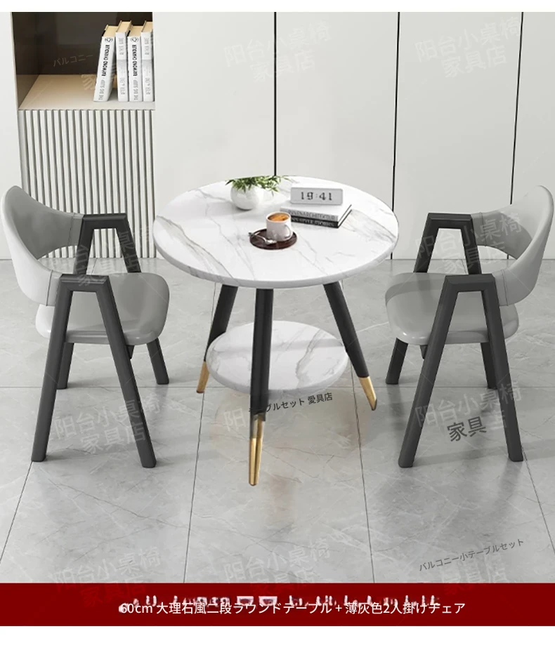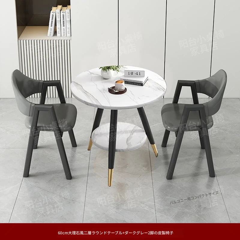 濃灰色2人用レザー椅子+60仿大理丸テーブル