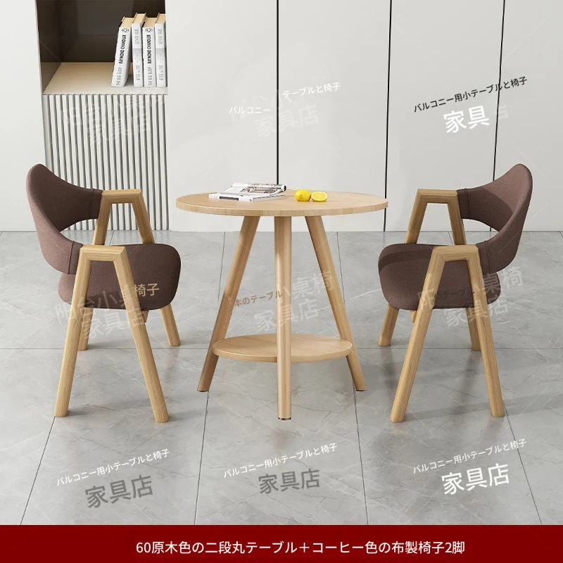 コーヒー色2人用ファブリック椅子+60原木色丸テーブル