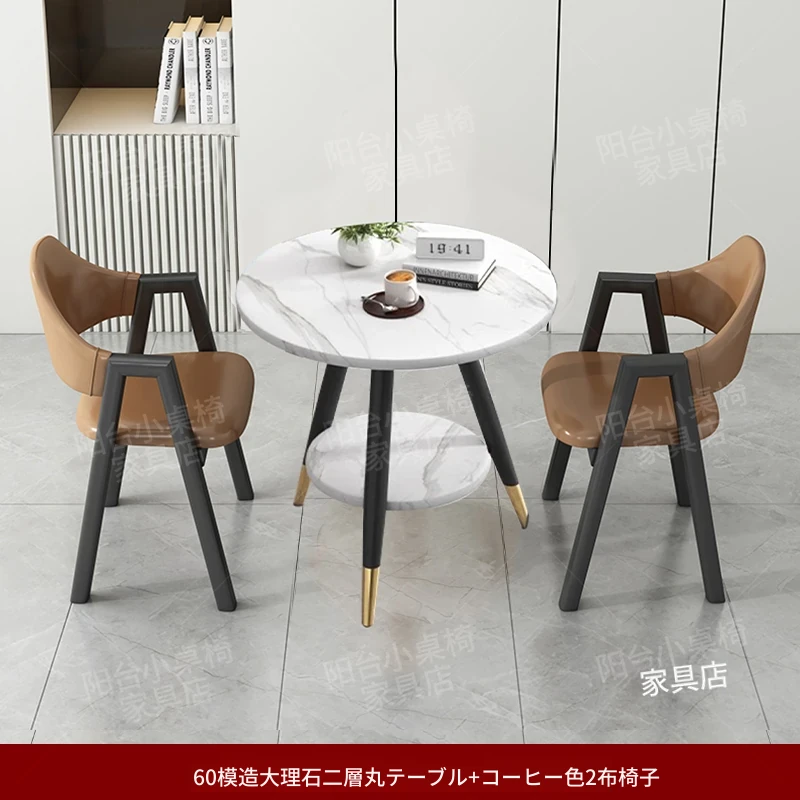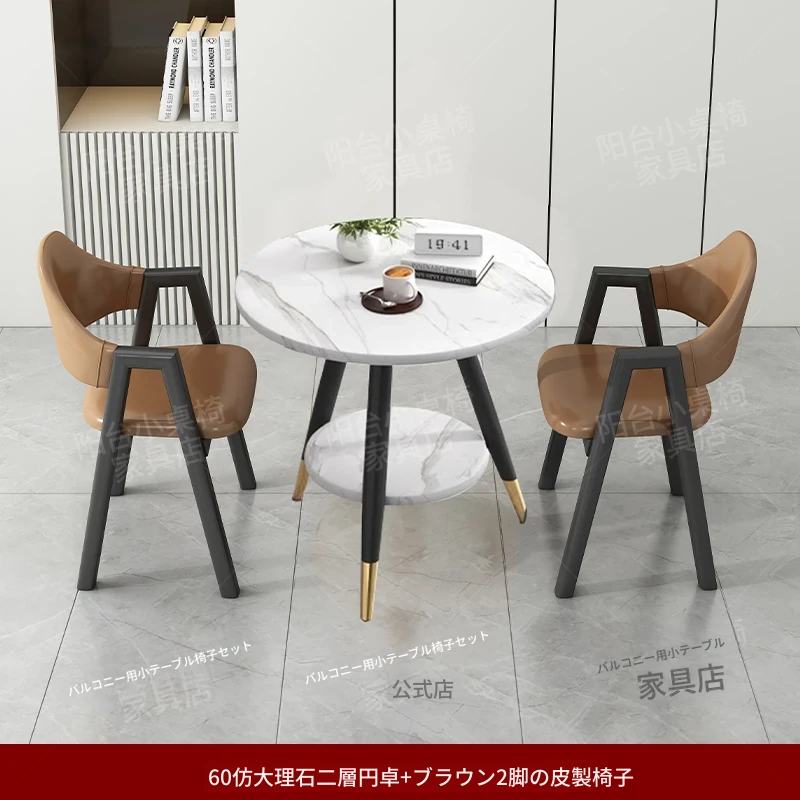 ブラウン色2人用レザー椅子+60仿大理丸テーブル