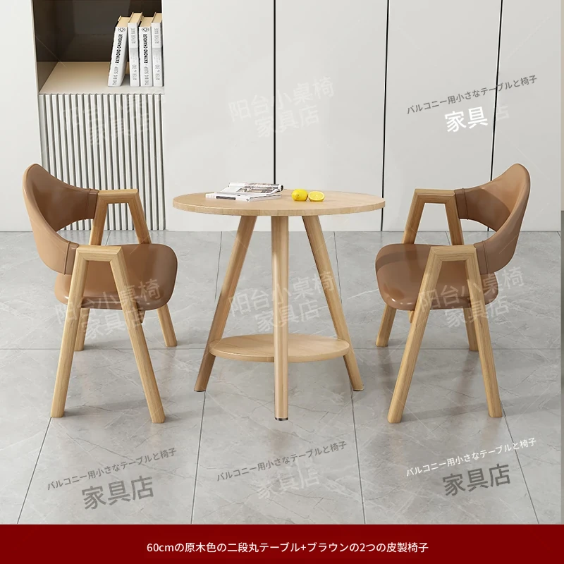 淡ブラウン色2人用レザー椅子+60原木色丸テーブル
