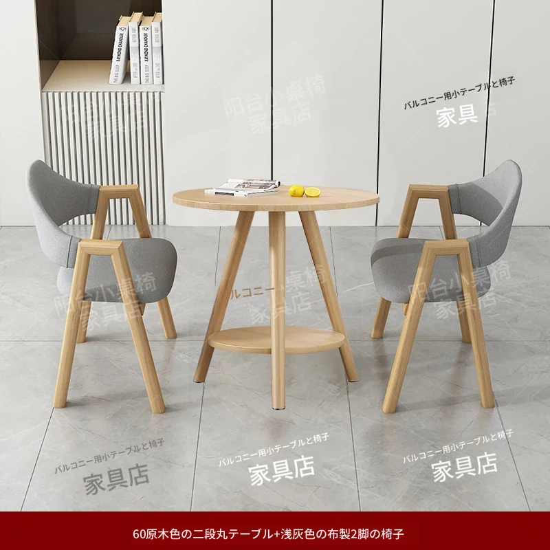 淡灰色2人用ファブリック椅子+60原木色丸テーブル