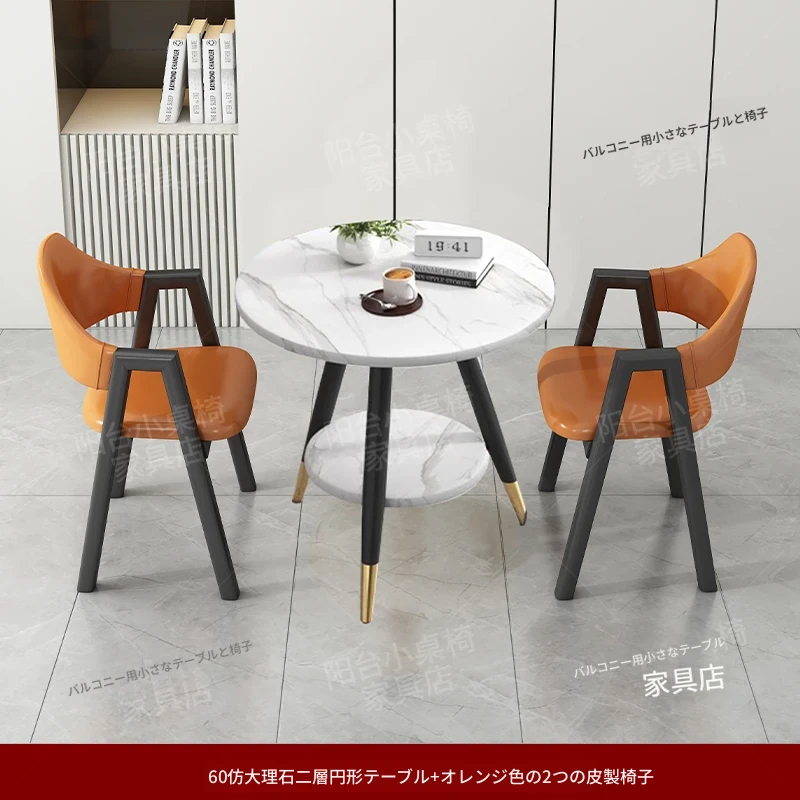 オレンジ色2人用レザー椅子+60仿大理丸テーブル