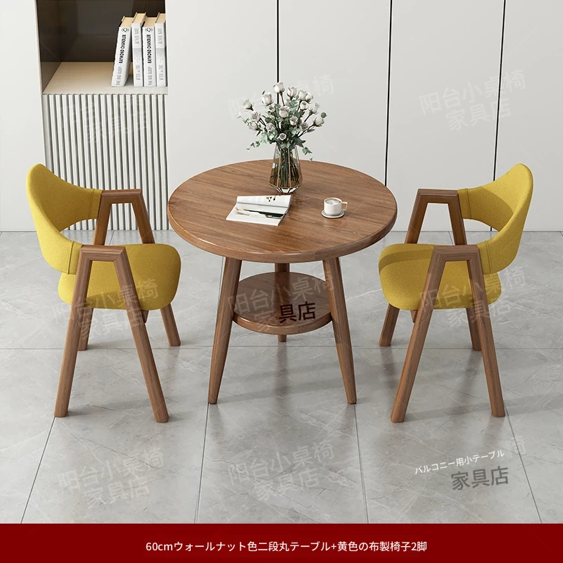 黄色2人用ファブリック椅子+60胡桃色丸テーブル