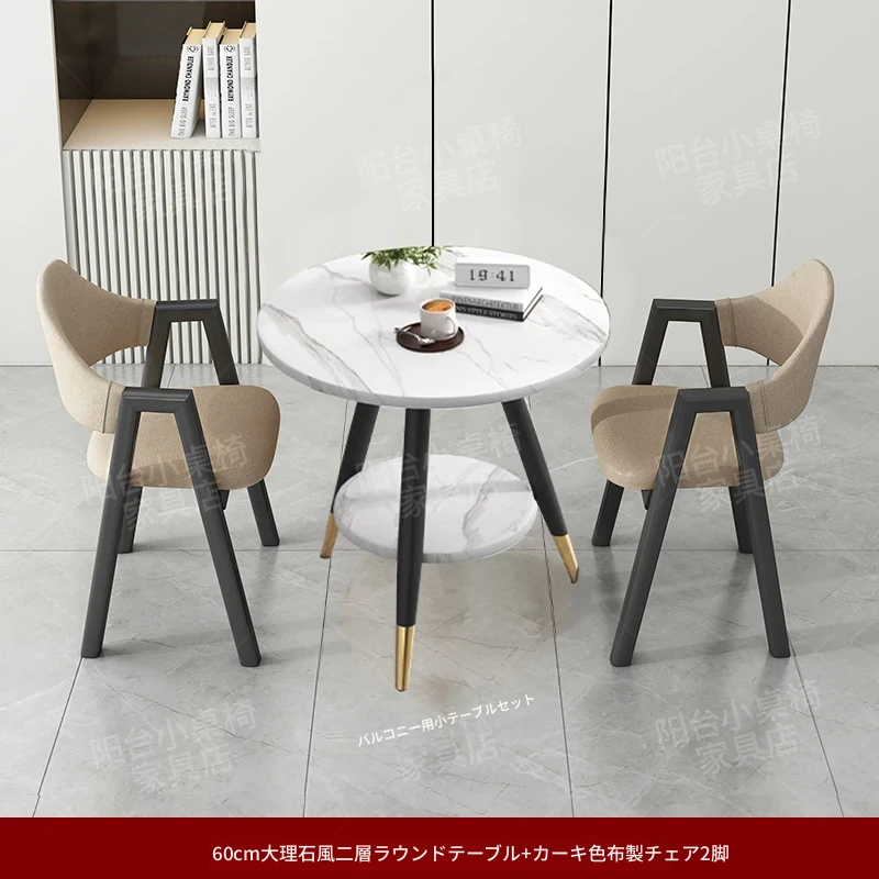 カーキ色2人用ファブリック椅子+60仿大理丸テーブル