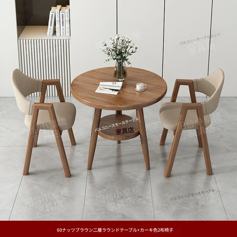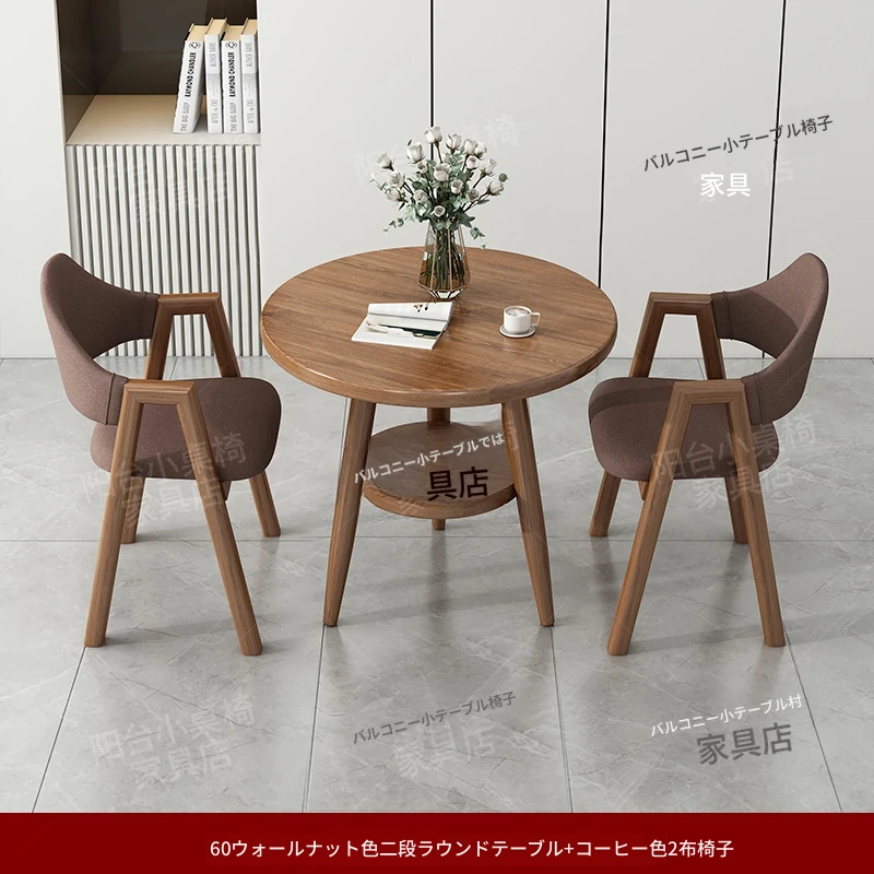 コーヒー色2人用ファブリック椅子+60胡桃色丸テーブル