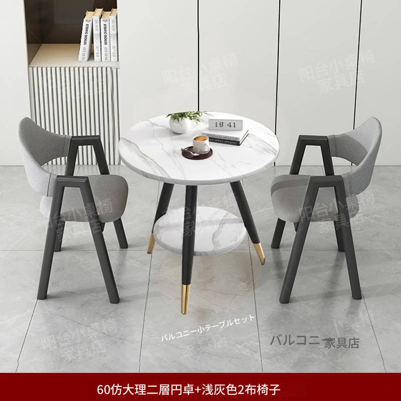 淡灰色2人用ファブリック椅子+60仿大理丸テーブル