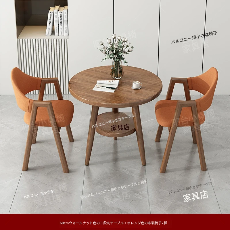 オレンジ色2人用ファブリック椅子+60胡桃色丸テーブル
