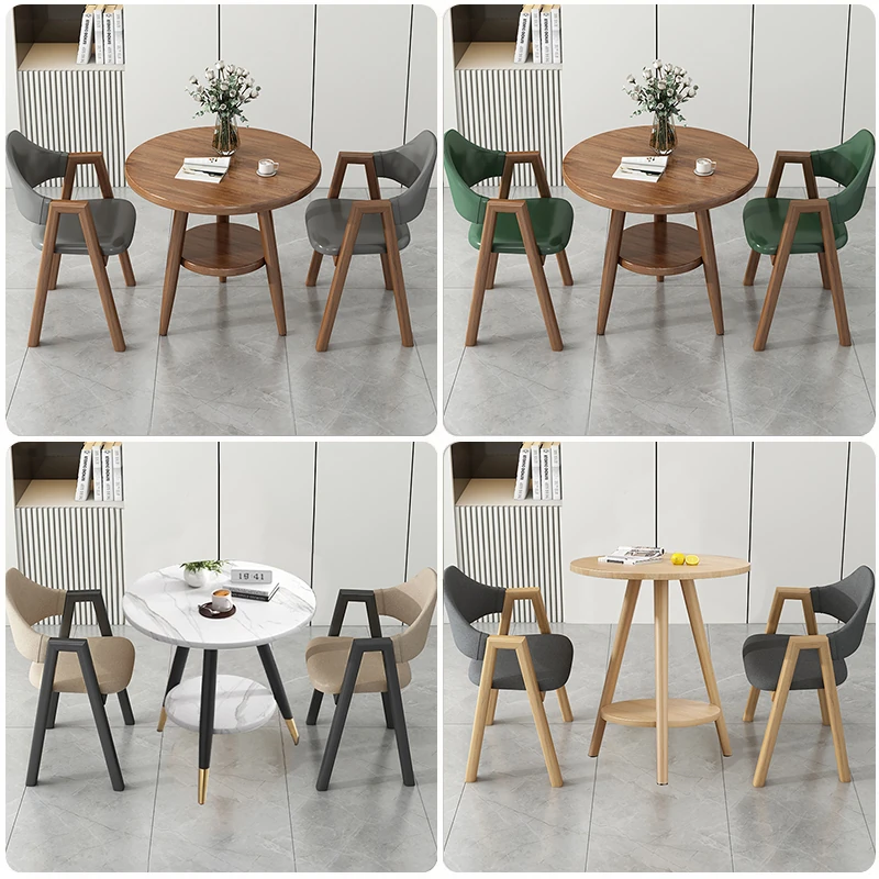 コーヒー色2人用ファブリック椅子+60仿大理丸テーブル