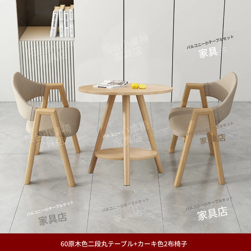 カーキ色2人用ファブリック椅子+60原木色丸テーブル