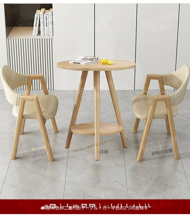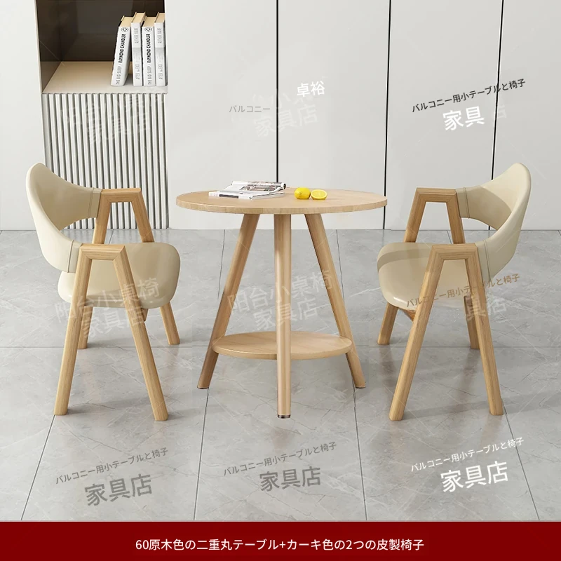 カーキ色2人用レザー椅子+60原木色丸テーブル