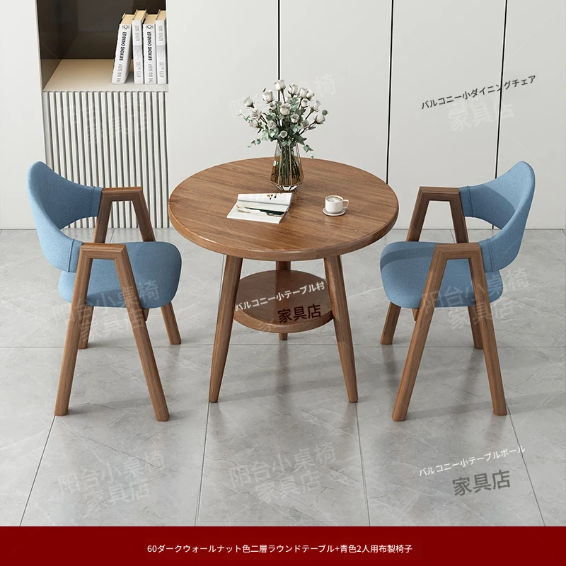 青色2人用ファブリック椅子+60胡桃色丸テーブル